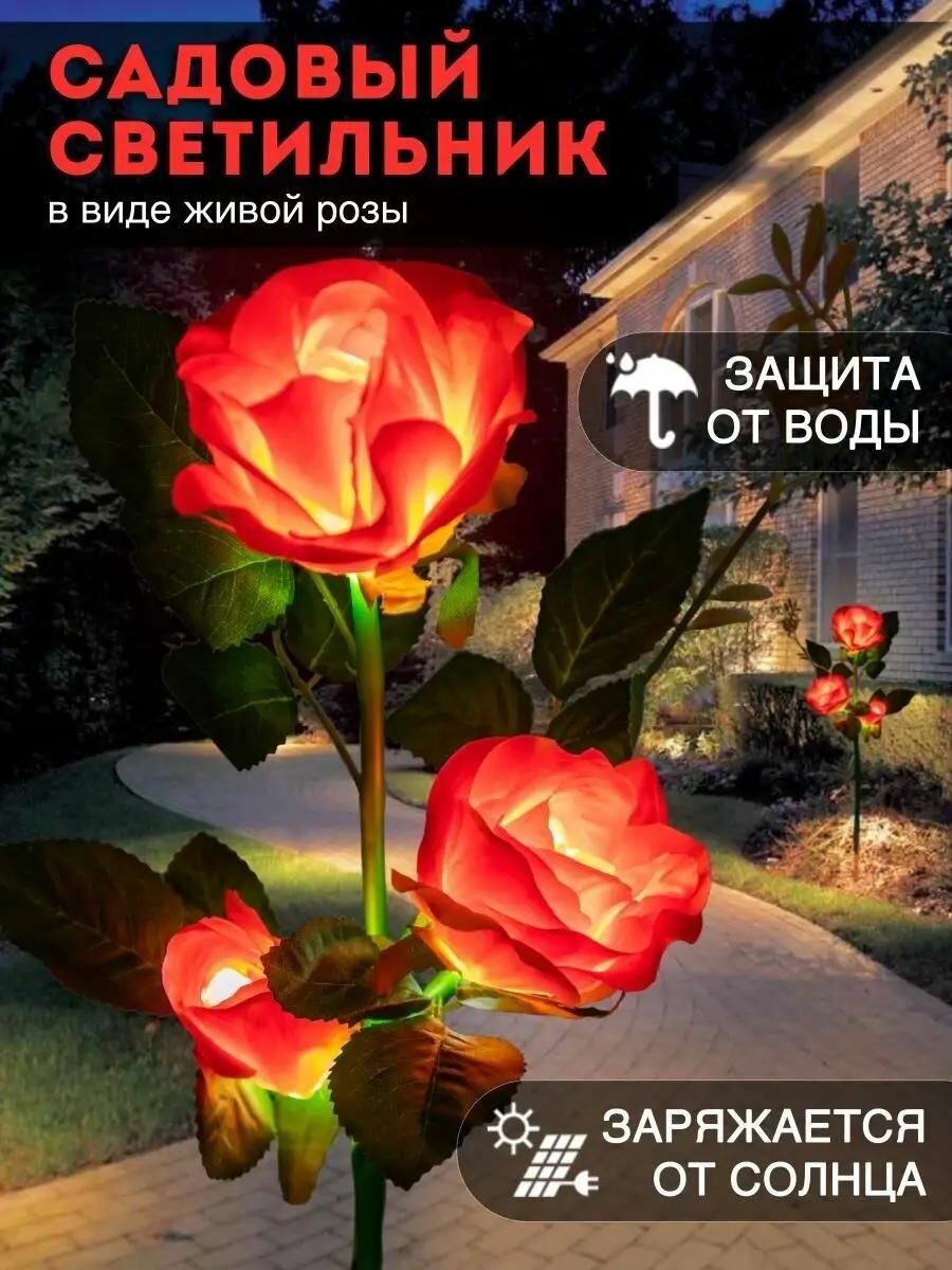 Светильник садовый на солнечной батарее уличный, роза интересное: