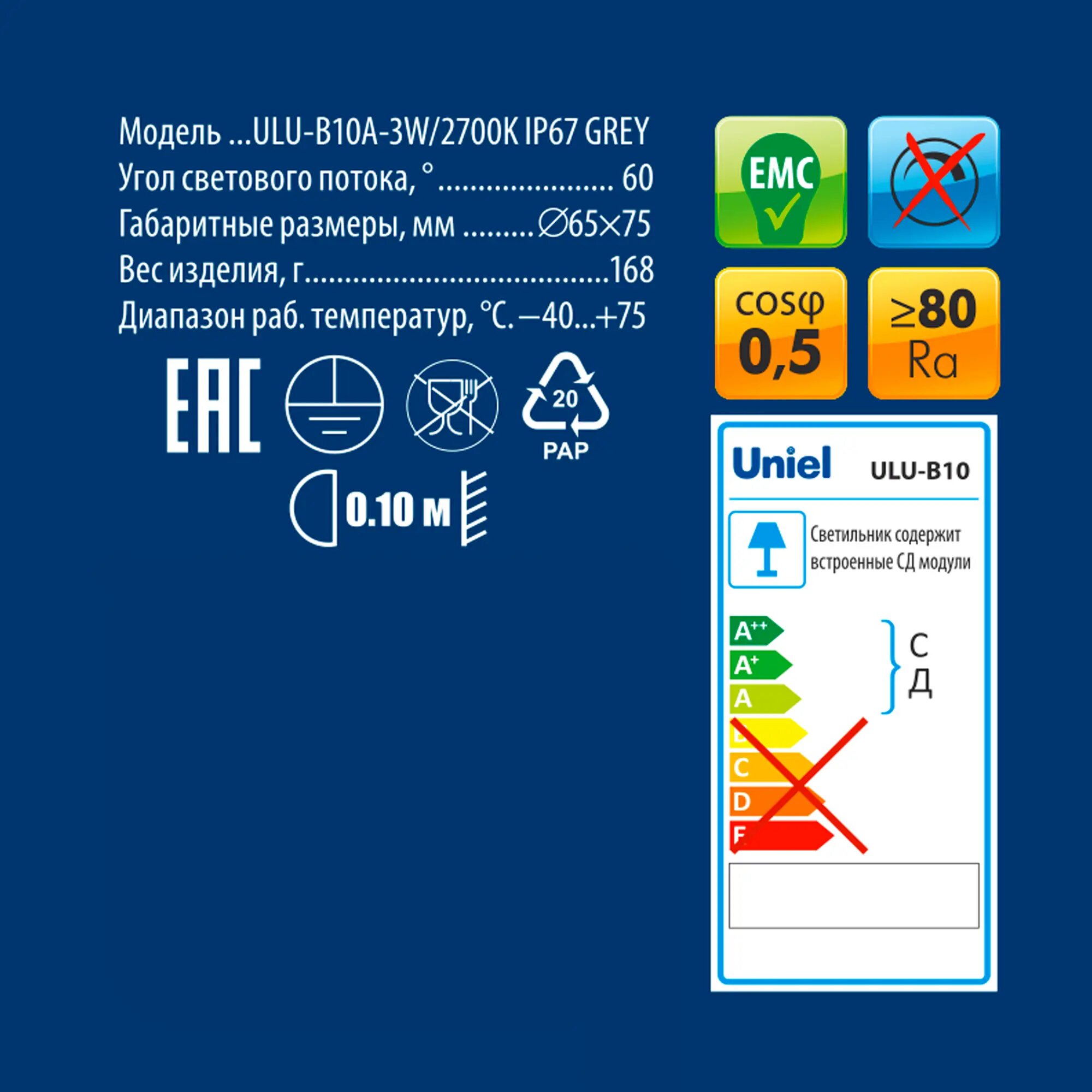 СохранитьСветильник встраиваемый светодиодный уличный Uniel ULUB10A 3 Вт IP67 цвет серый интересное:
