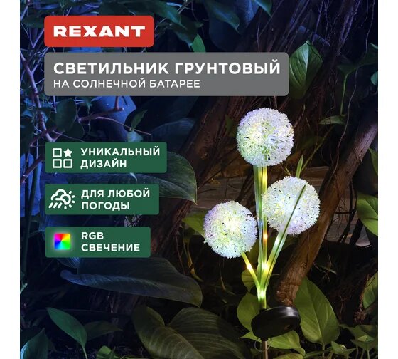 Купить Светильник грунтовый Одуванчик, RGB, встроенный аккумулятор, солнечная панель Rexant 602-2433