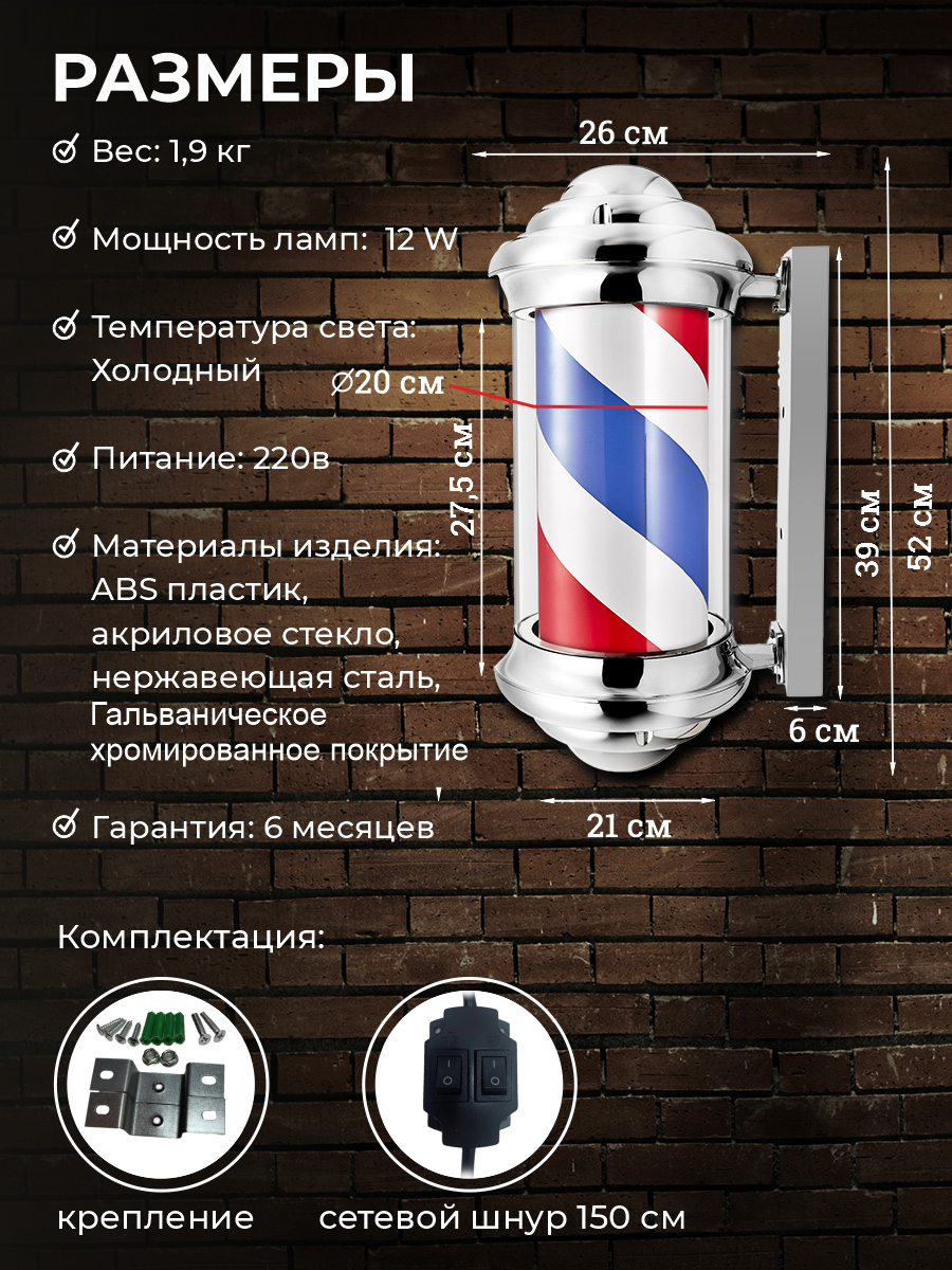 СохранитьOKIRO / Барбер пол OKIRO Barber pole M 346 E серебристый / барбер пул для барбер шопа / Barber pole Barber Shop уличный светильник интересное: