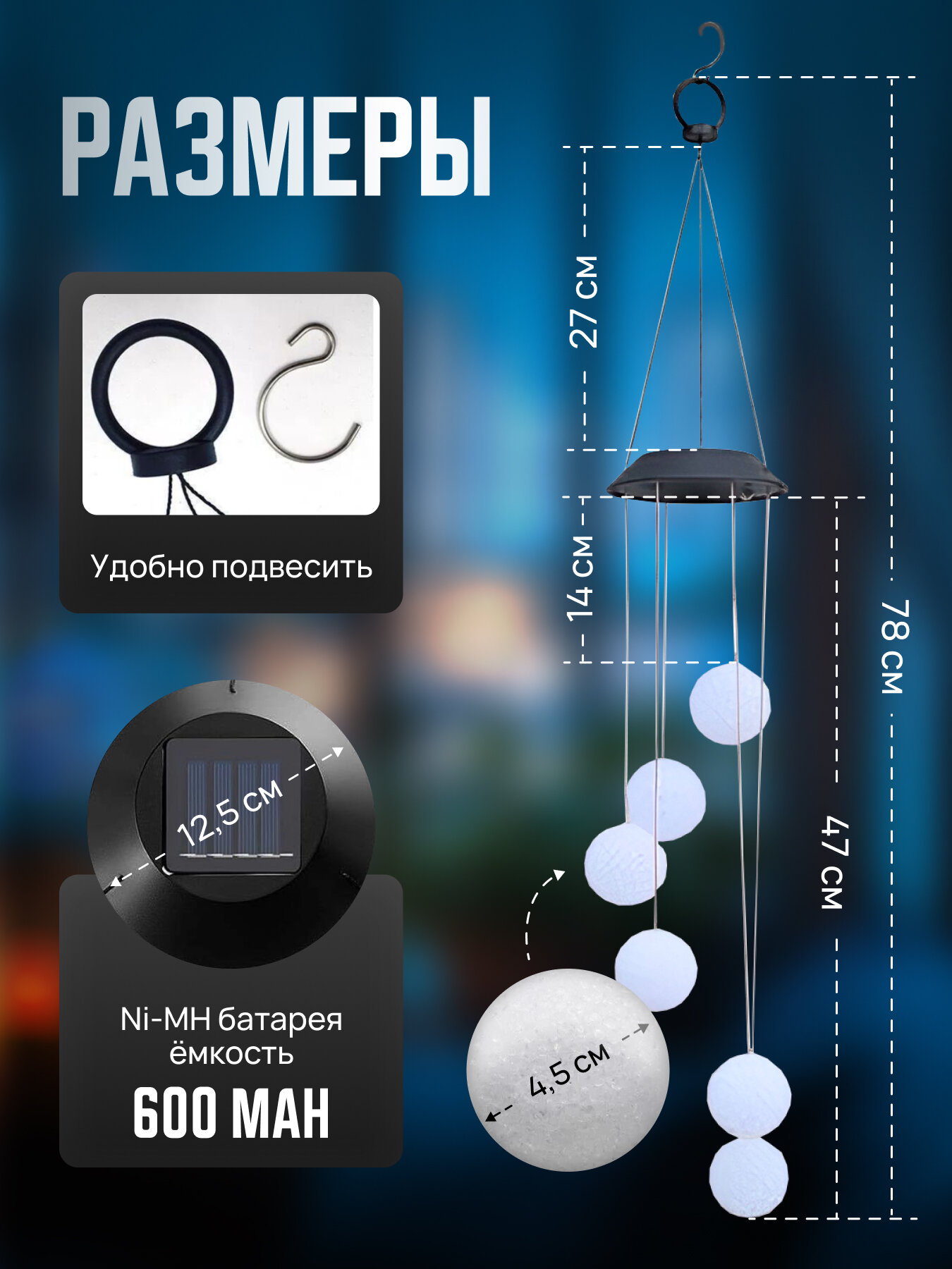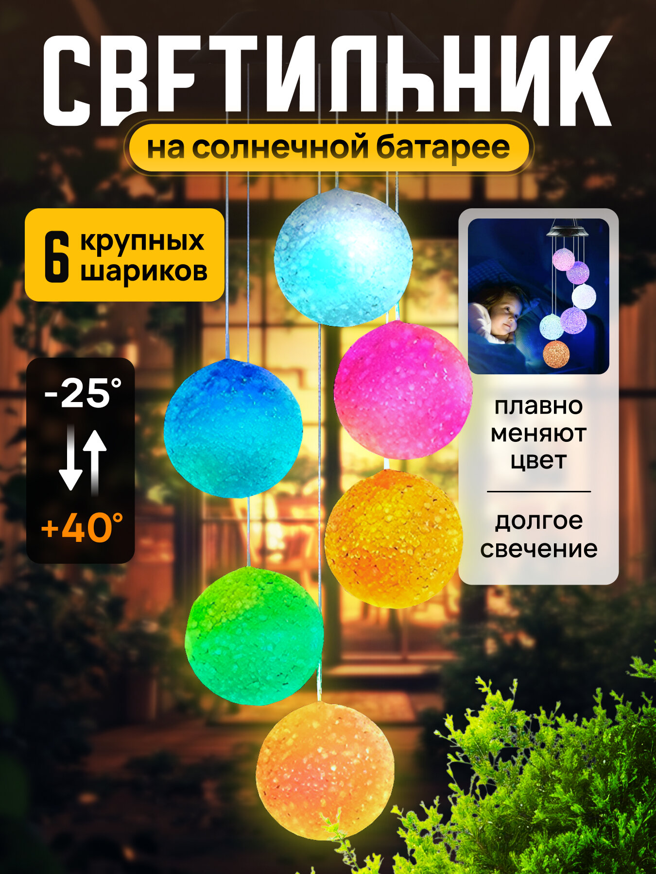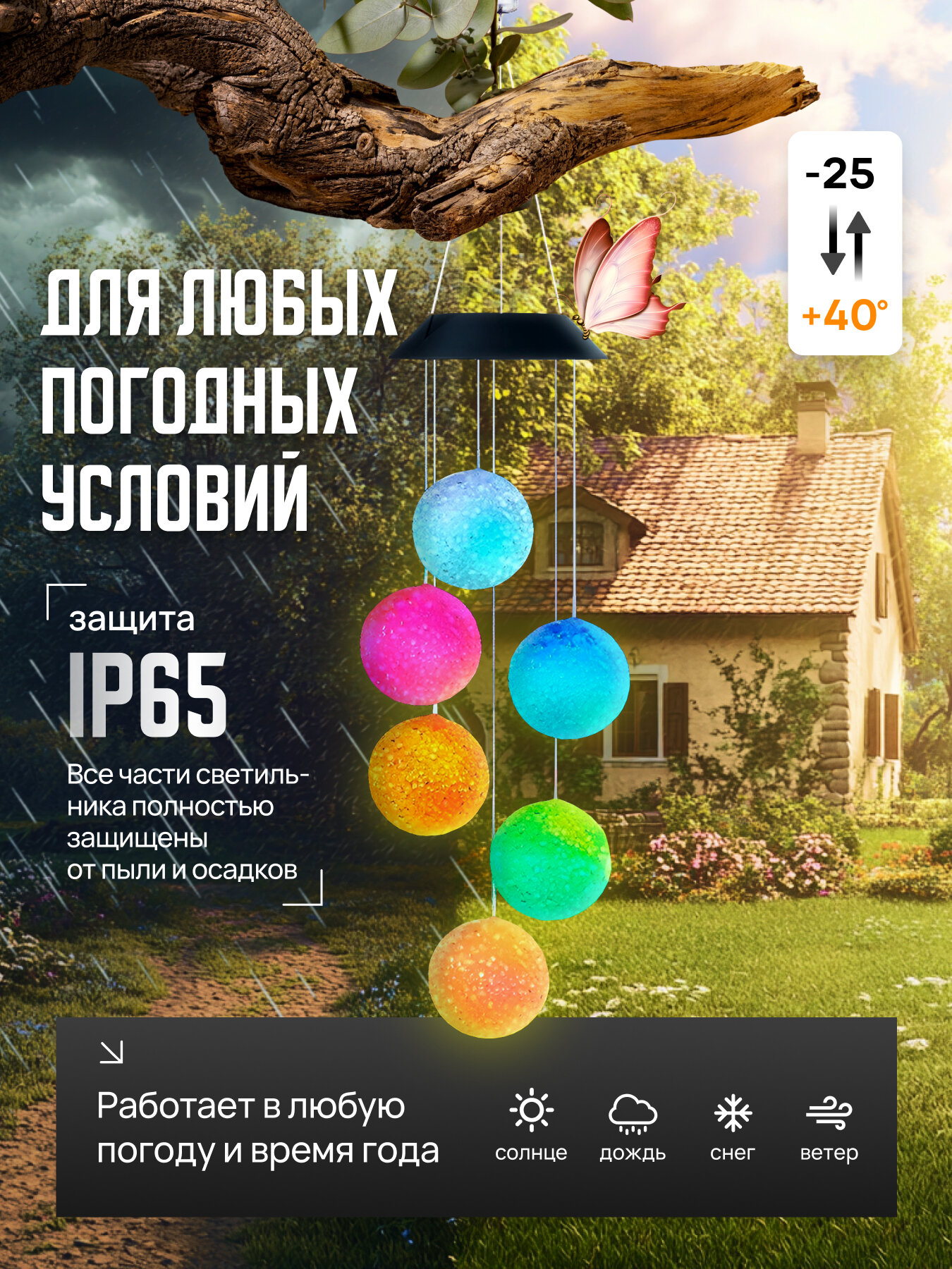 Уличный светильник "Шарики" на солнечной батарее, подвесной, разноцветный интересное: