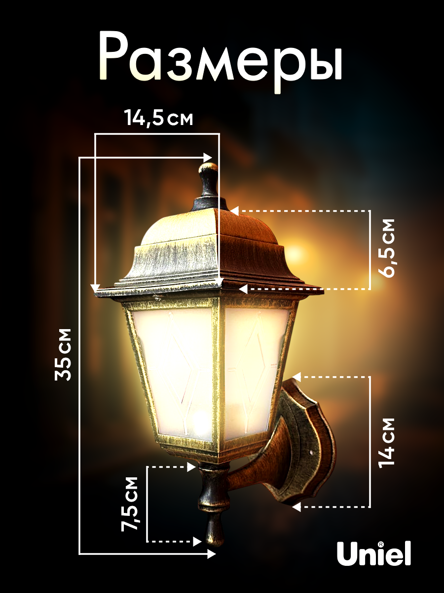 Светильник уличный, под лампу Е27. Архитектурный накладной, бронзовый, Uniel интересное: