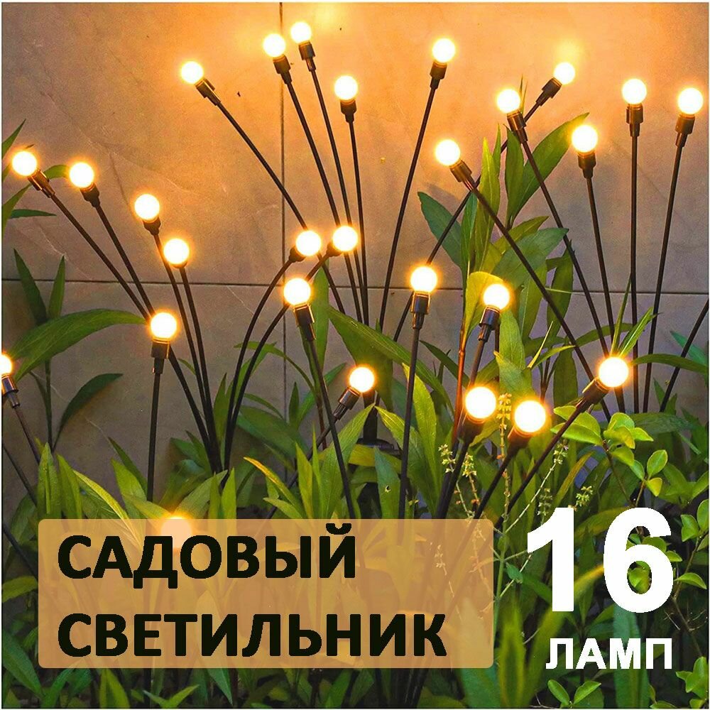 Декоративный садовый уличный светильник 16 шт. на солнечной батарее "Фонарик светлячок"