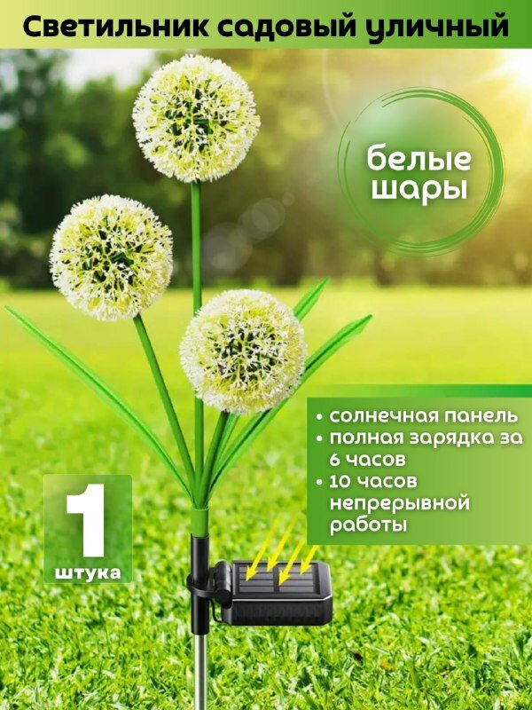 Ниже Вы можете прочитать отзывы на Светильник на солнечной батарее для дачи, садовый фонарь Одуванчик белые шары, ознакомится с подробными характеристиками, посмотреть интересные обзоры и фотографии на Светильник на солнечной батарее для дачи, садовый фонарь Одуванчик белые шары.