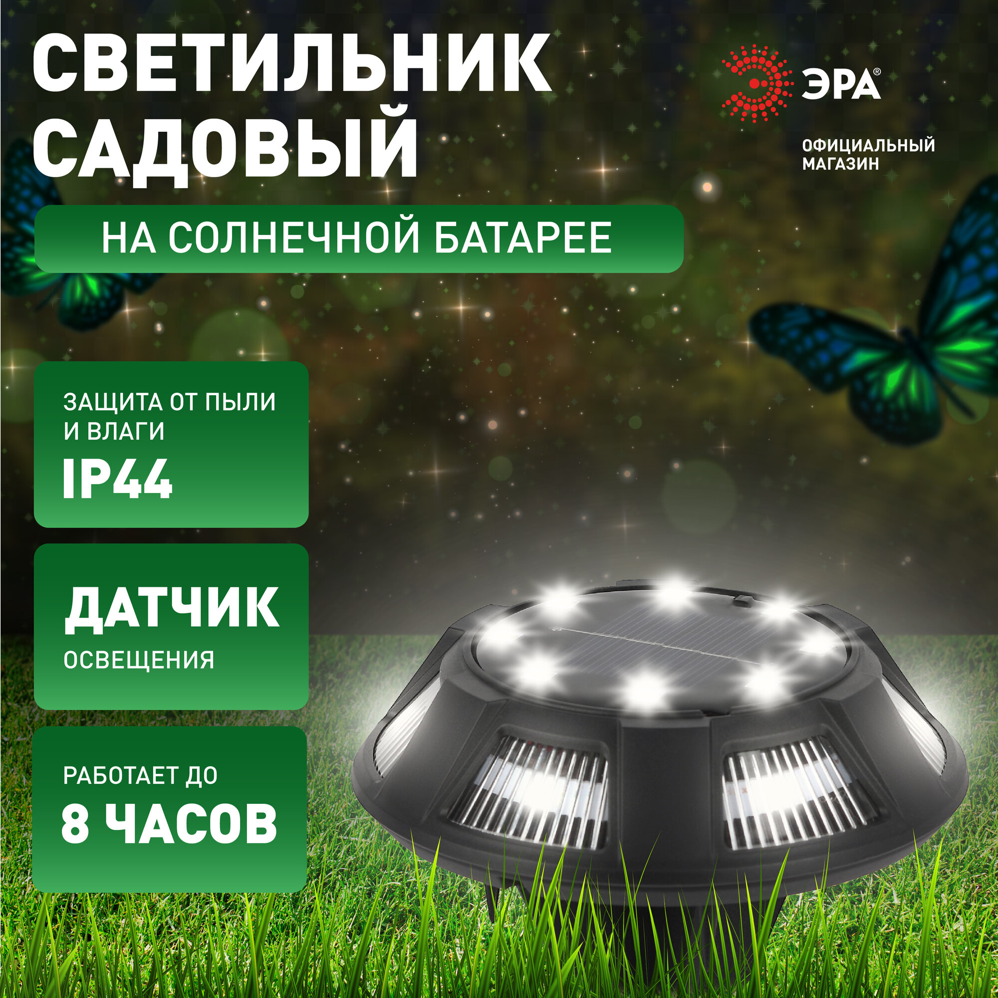 Купить Светильник уличный ЭРА ERAST024-01 на солнечной батарее подсветка Таблетка, сталь, пластик d 11 см