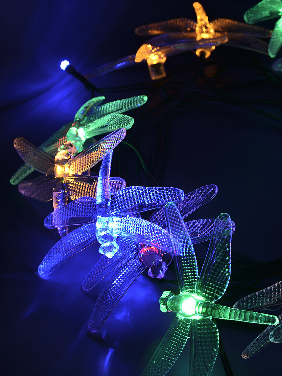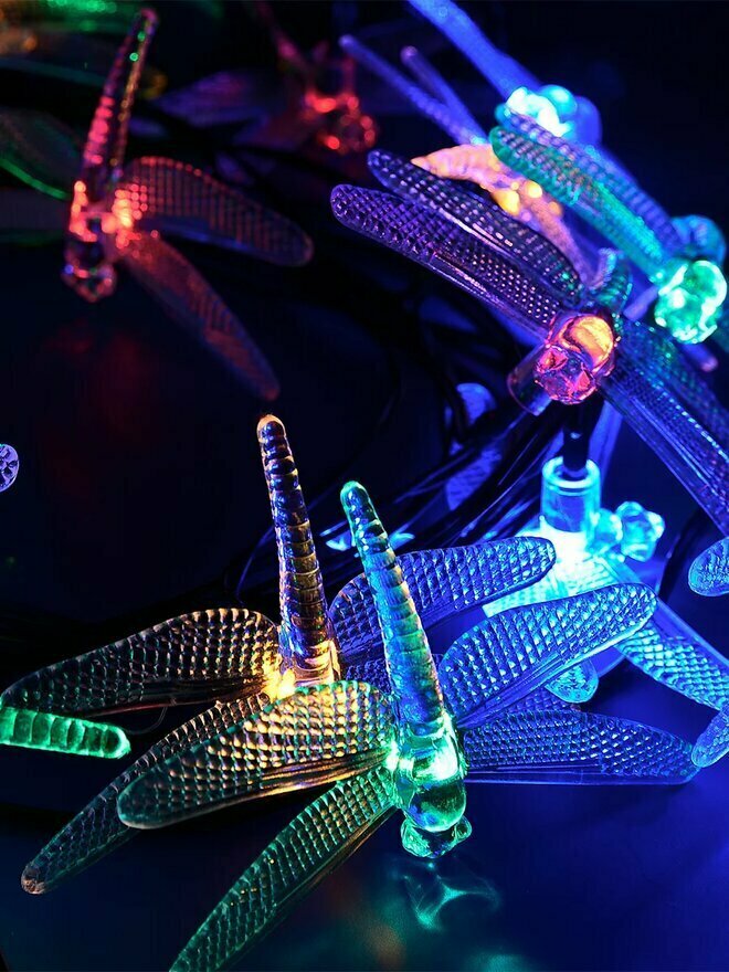 Садовая гирлянда на солнечной батарее, стрекозы. Разноцветный свет, два режима свечения. Уличная IP44. Uniel интересное: