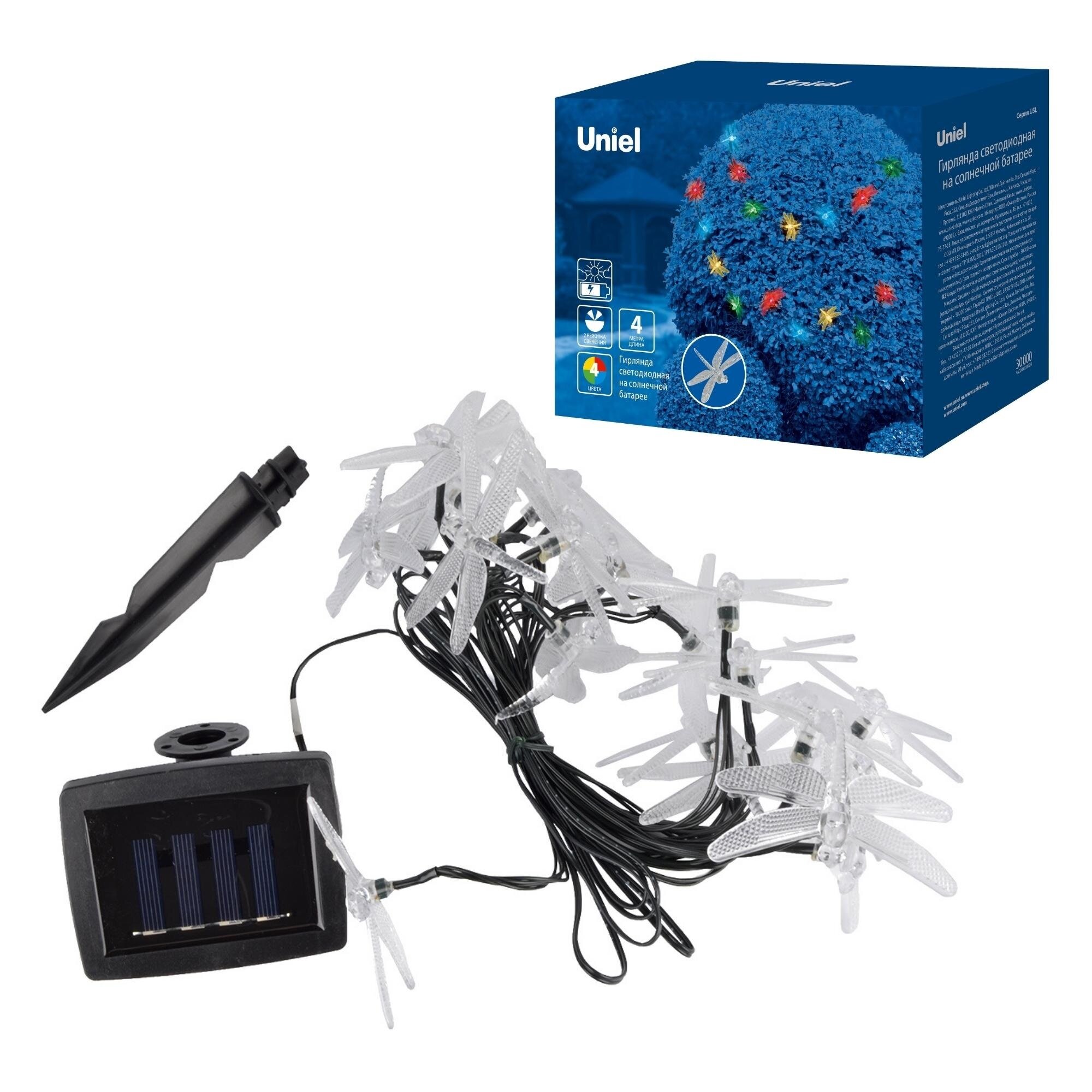 Купить Садовая гирлянда на солнечной батарее, стрекозы. Разноцветный свет, два режима свечения. Уличная IP44. Uniel