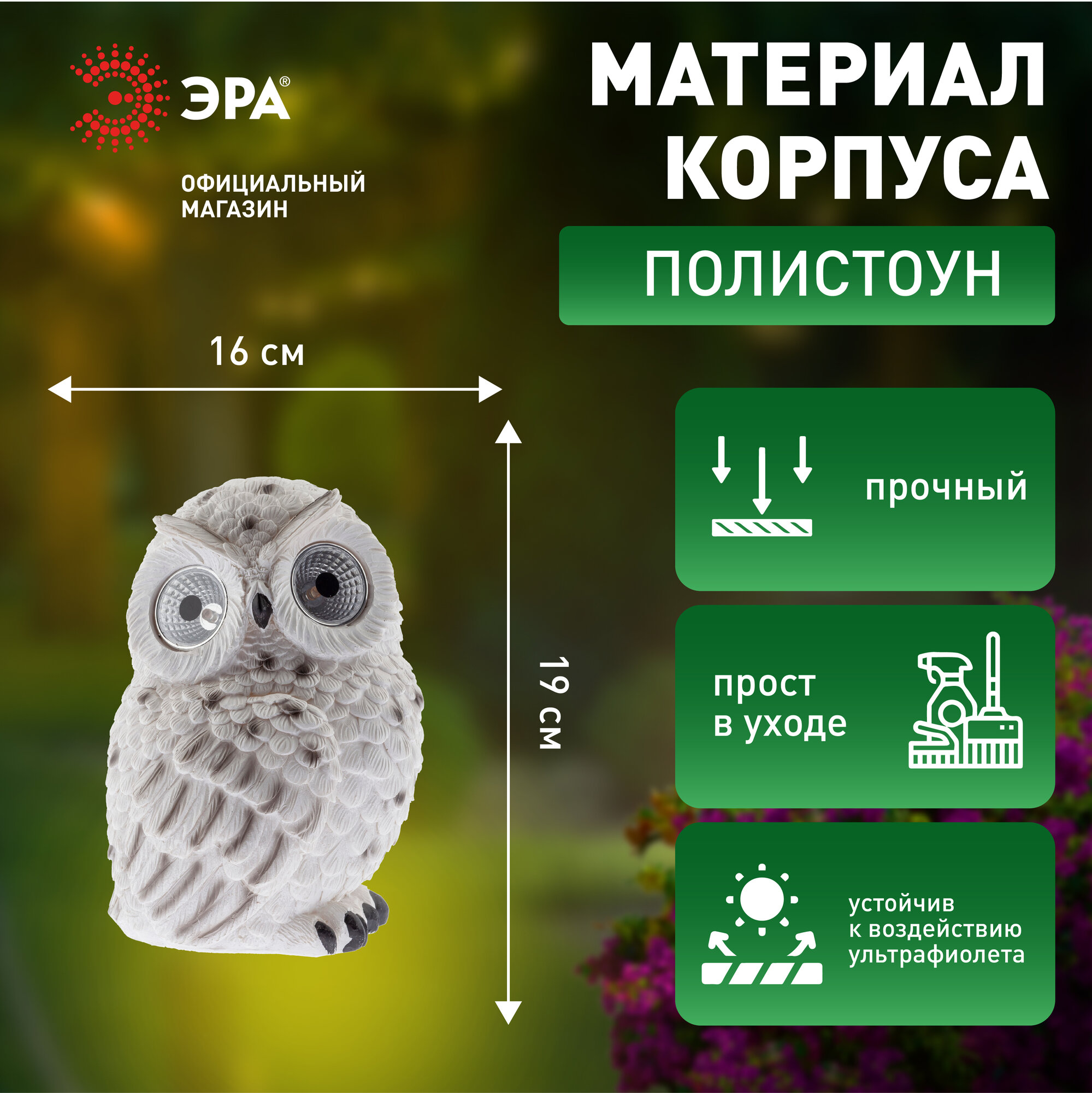 Садовая фигура ЭРА ERAFYS01-09 из полистоуна Полярная сова 19 см интересное: