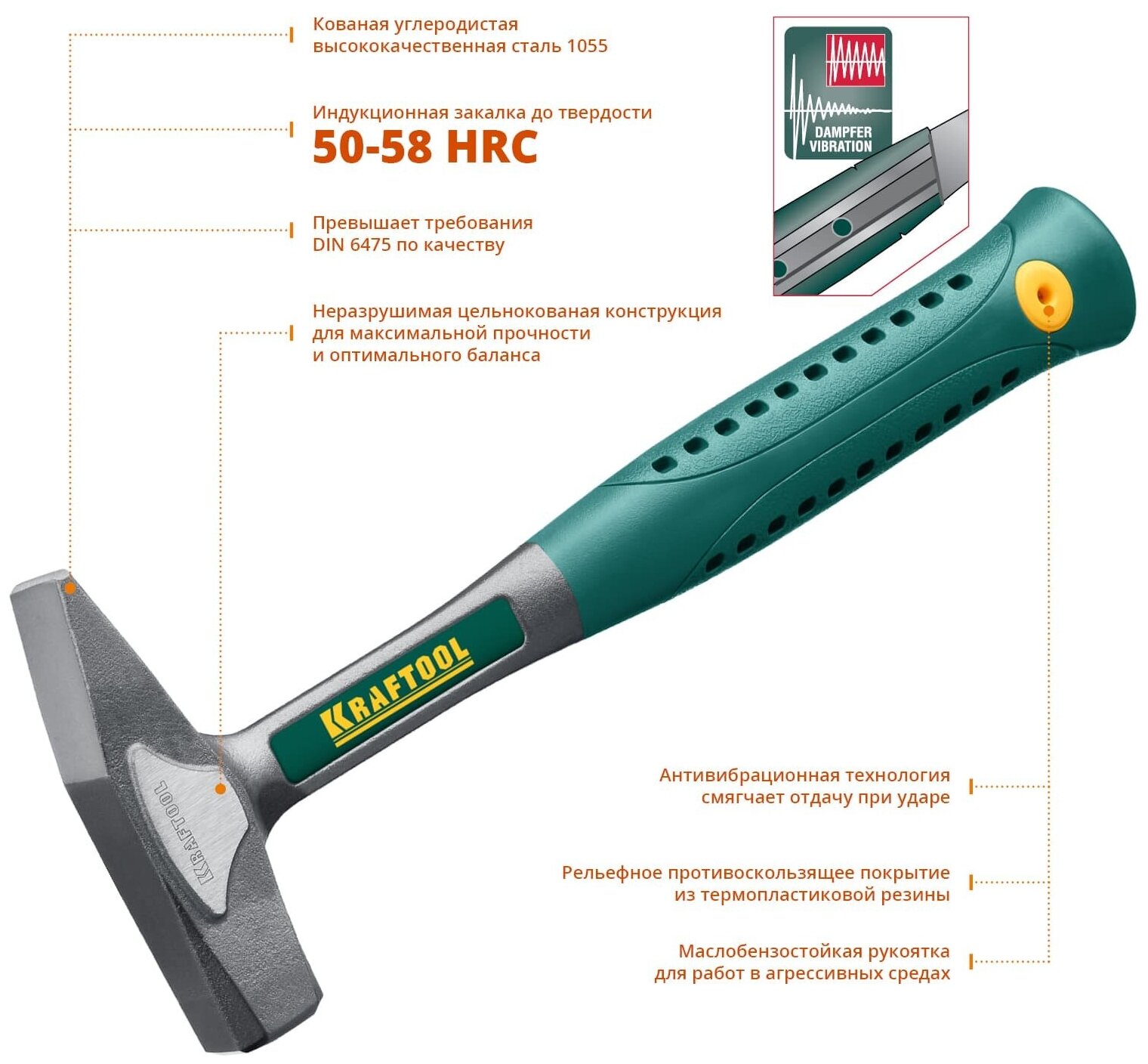 KRAFTOOL THOR 500 г молоток слесарный цельнокованый, маслобензостойкая виброгасящая рукоятка, 20070-05