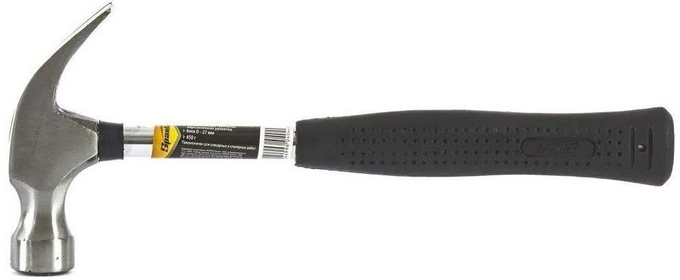 Sparta 104405 Молоток-гвоздодер, 450 г, боек 27 мм, металлическая трубчатая обрезиненная рукоятка .