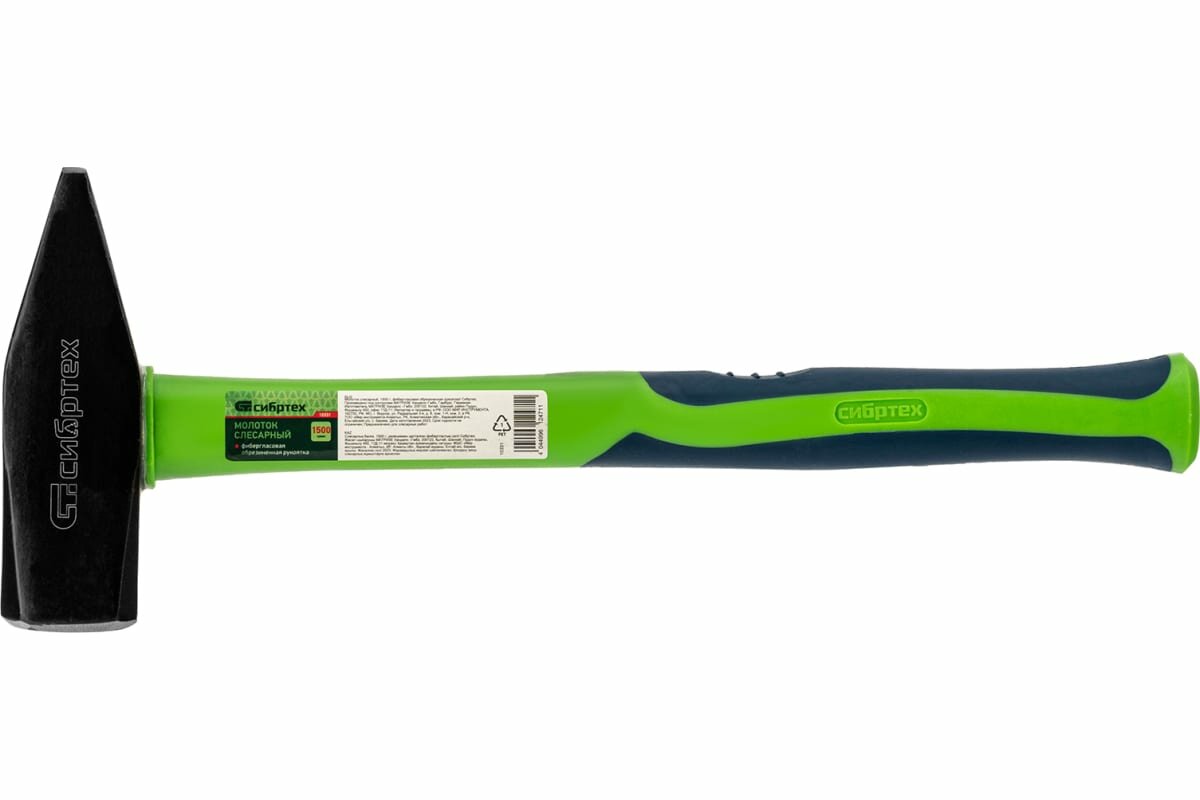 Молоток слесарный Сибртех 1500 г, фибергласовая обрезиненная рукоятка 10331