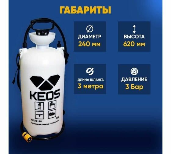 Бак для подачи воды в зону алмазного сверления KEOS 17L, 17л, 3 бар интересное: