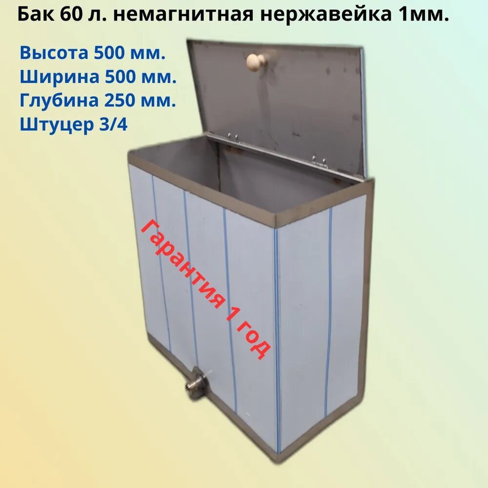 Бак для бани из нержавейки, водонагревательный горизонтальный квадратный 60 л, 1мм/AISI 304 штуцер 3/4, СтальМастер интересное: