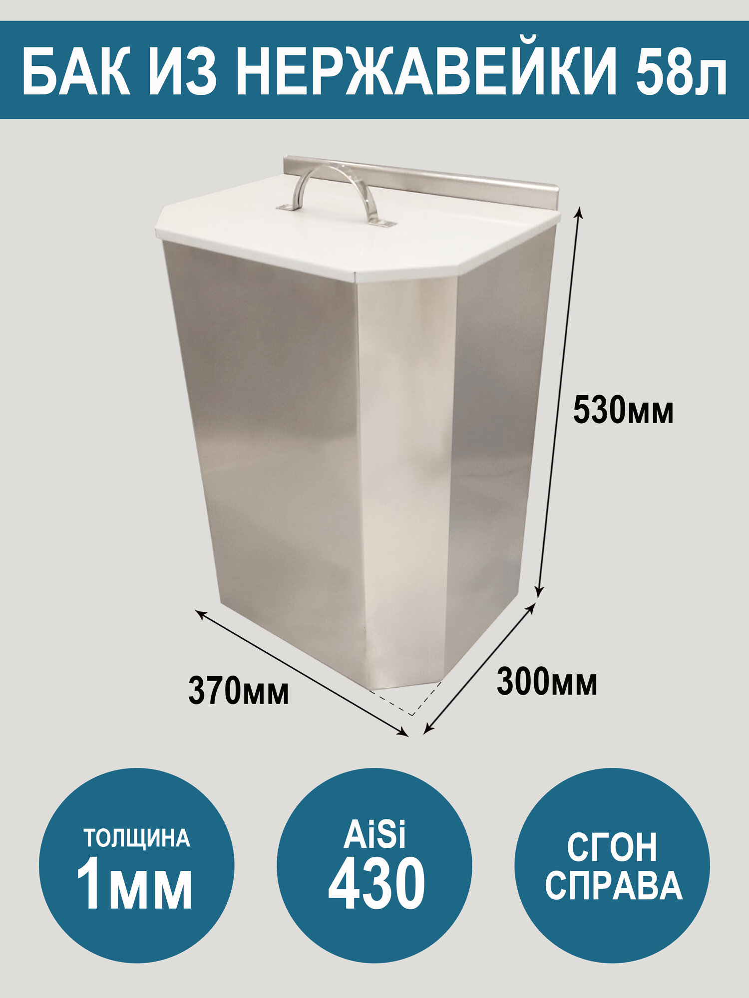 Бак из нержавеющей стали AiSi430 с крышкой, объем 58 литров, без сгона