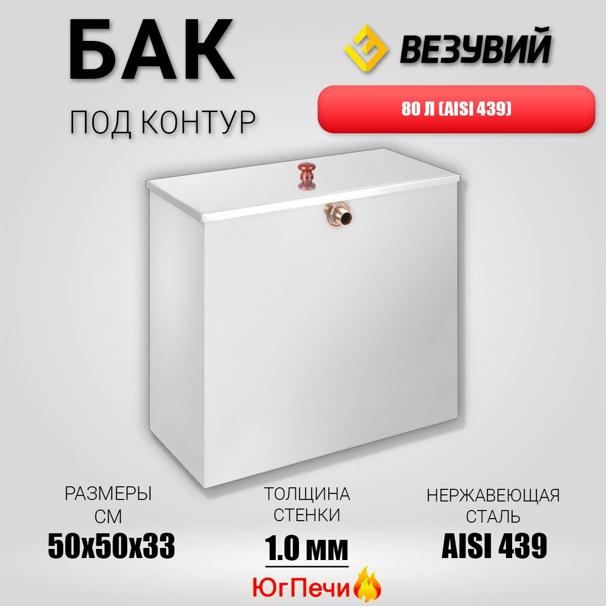 Бак под контур 80л (1,0мм) Длинна 500 мм. Нержавеющая сталь AISI 439. интересное: