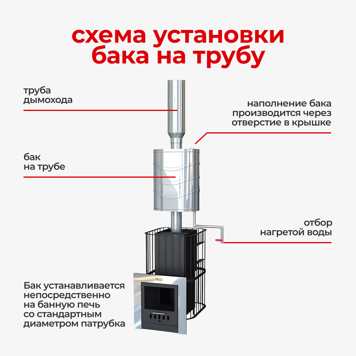Бак LAVA для бани на трубе 70 литров, d115, AISI 439 1,0 мм, МП интересное: