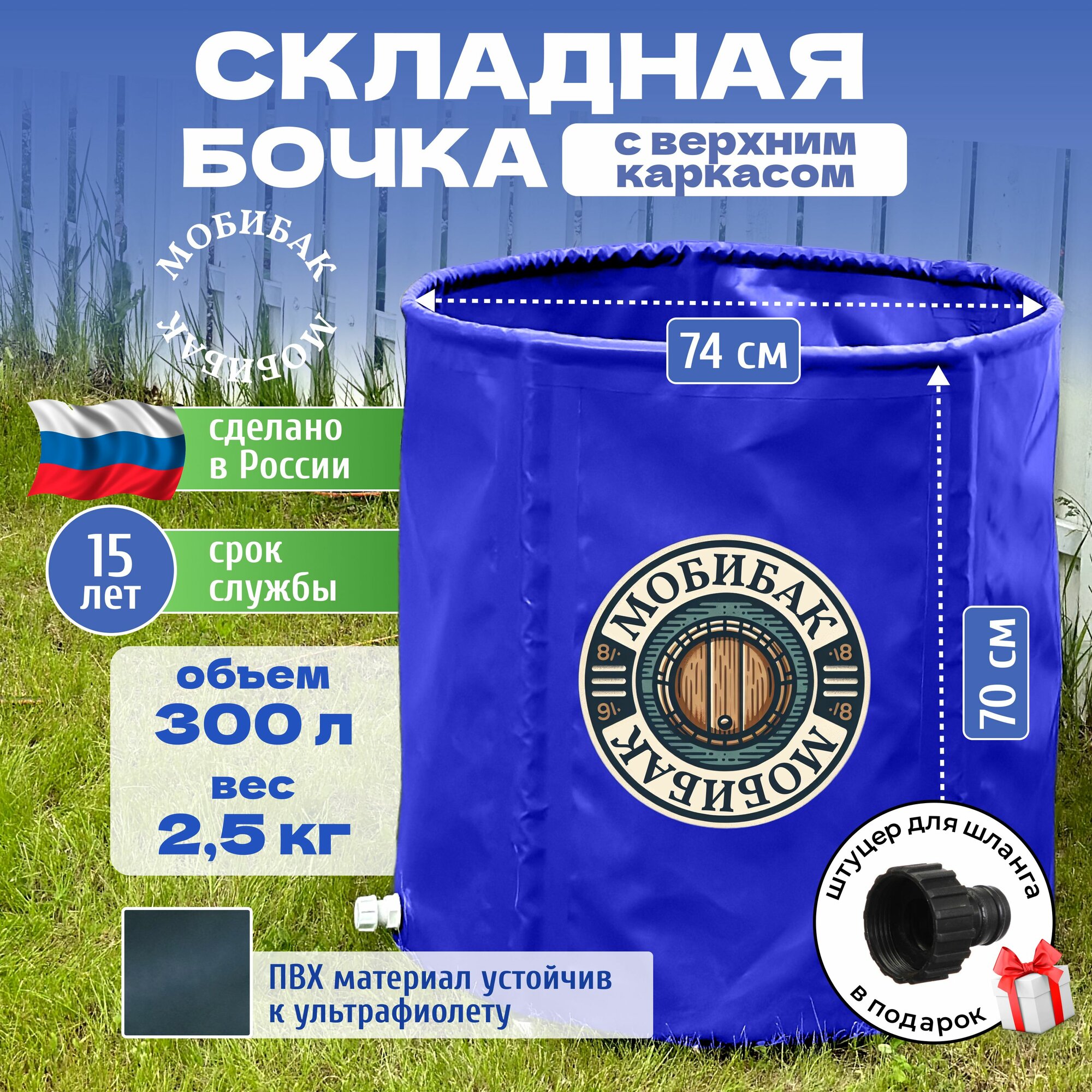 МобиБак - Складная Бочка - с верхним каркасом для воды 300литров бак / складная емкость для воды(цвет-синий) интересное: