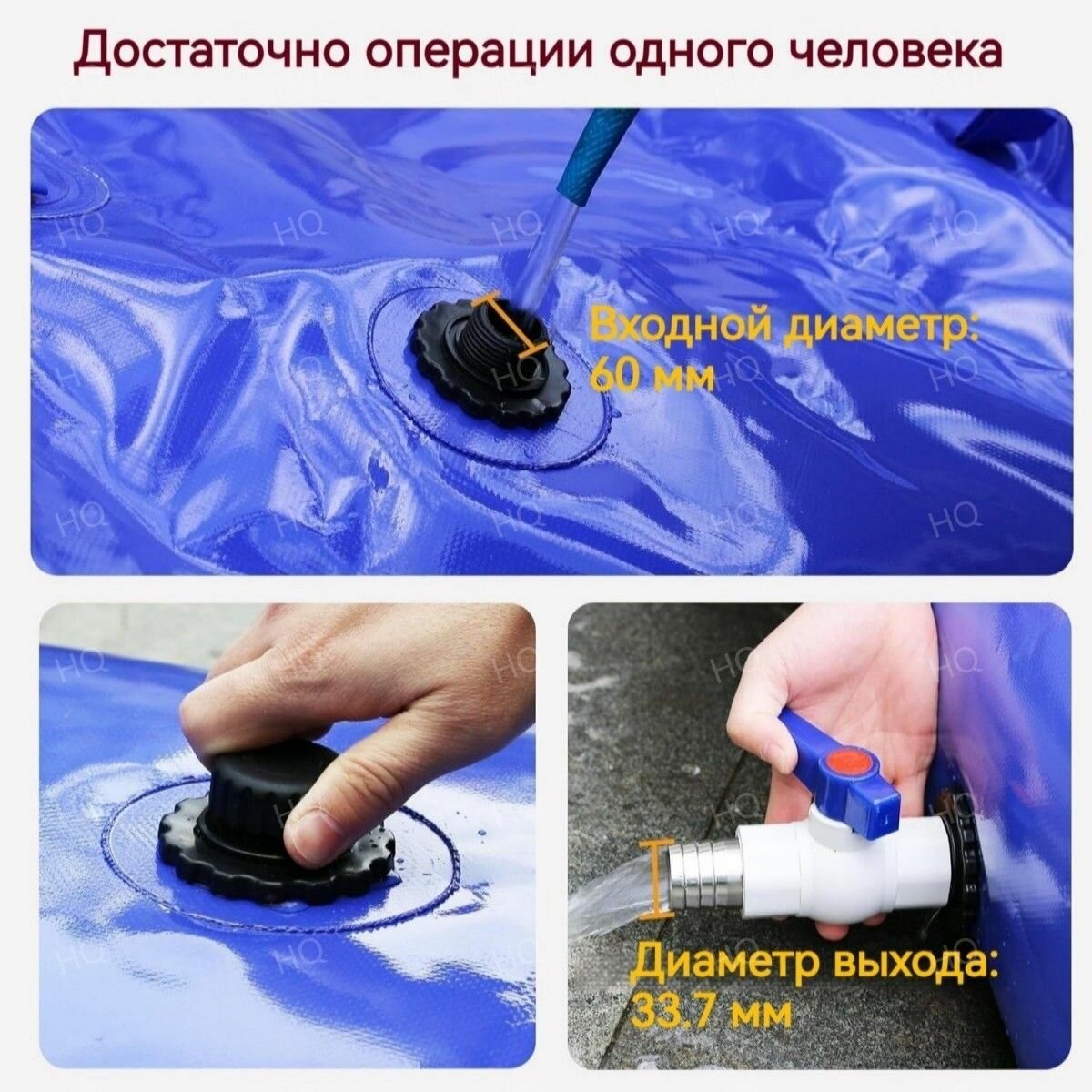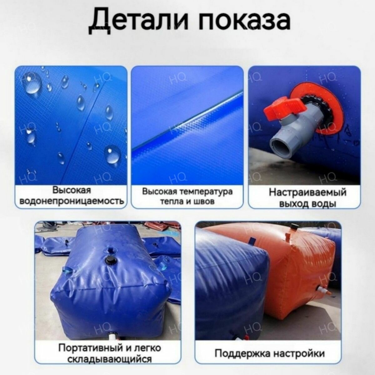 Резервуар для хранения воды на 500 литров с краном, складной мешок для воды, 110*100*50 см интересное: