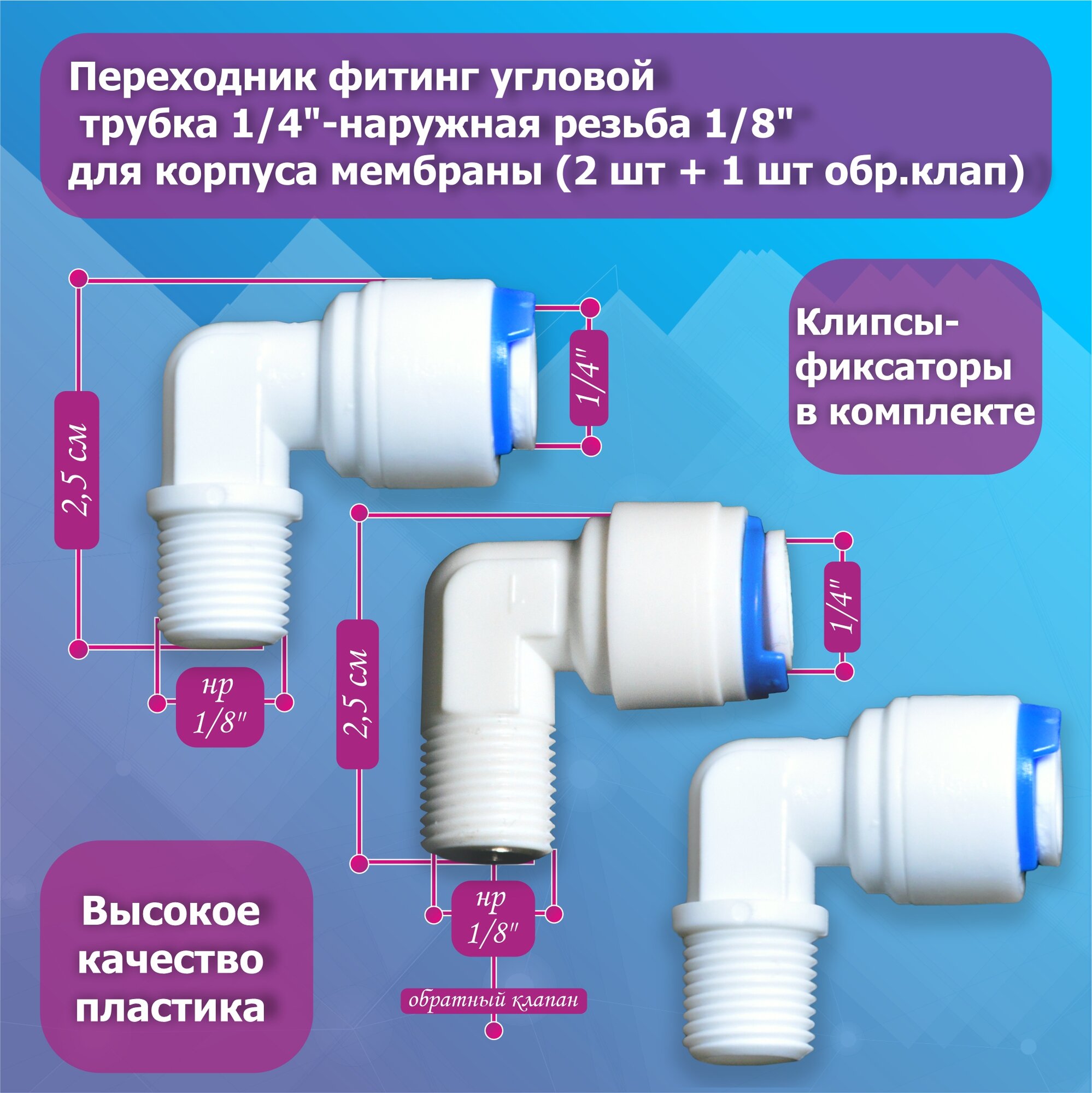 Комплект фитингов угловых для корпуса мембраны с обратным клапаном трубка 1/4" - наружная резьба 1/8"- 3 шт. интересное: