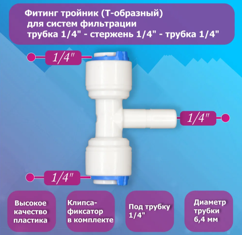 Переходник фитинг тройник (Т-образный) для фильтров обратного осмоса трубка 1/4"-стержень 1/4"-трубка 1/4" интересное: