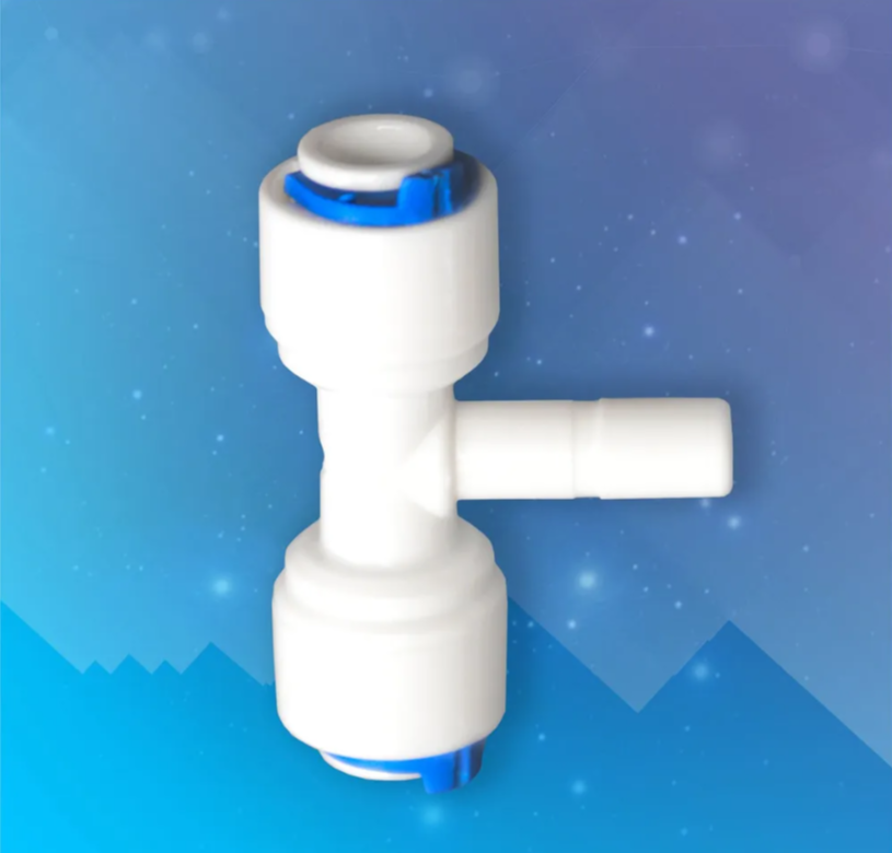 Купить Переходник фитинг тройник (Т-образный) для фильтров обратного осмоса трубка 1/4"-стержень 1/4"-трубка 1/4"