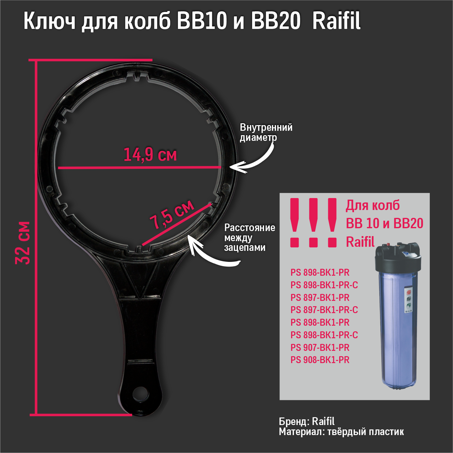Ключ для колб Raifil PS, черный, твердый, крепкий, пластик, Стандарт ВВ 10/ВВ 20 интересное: