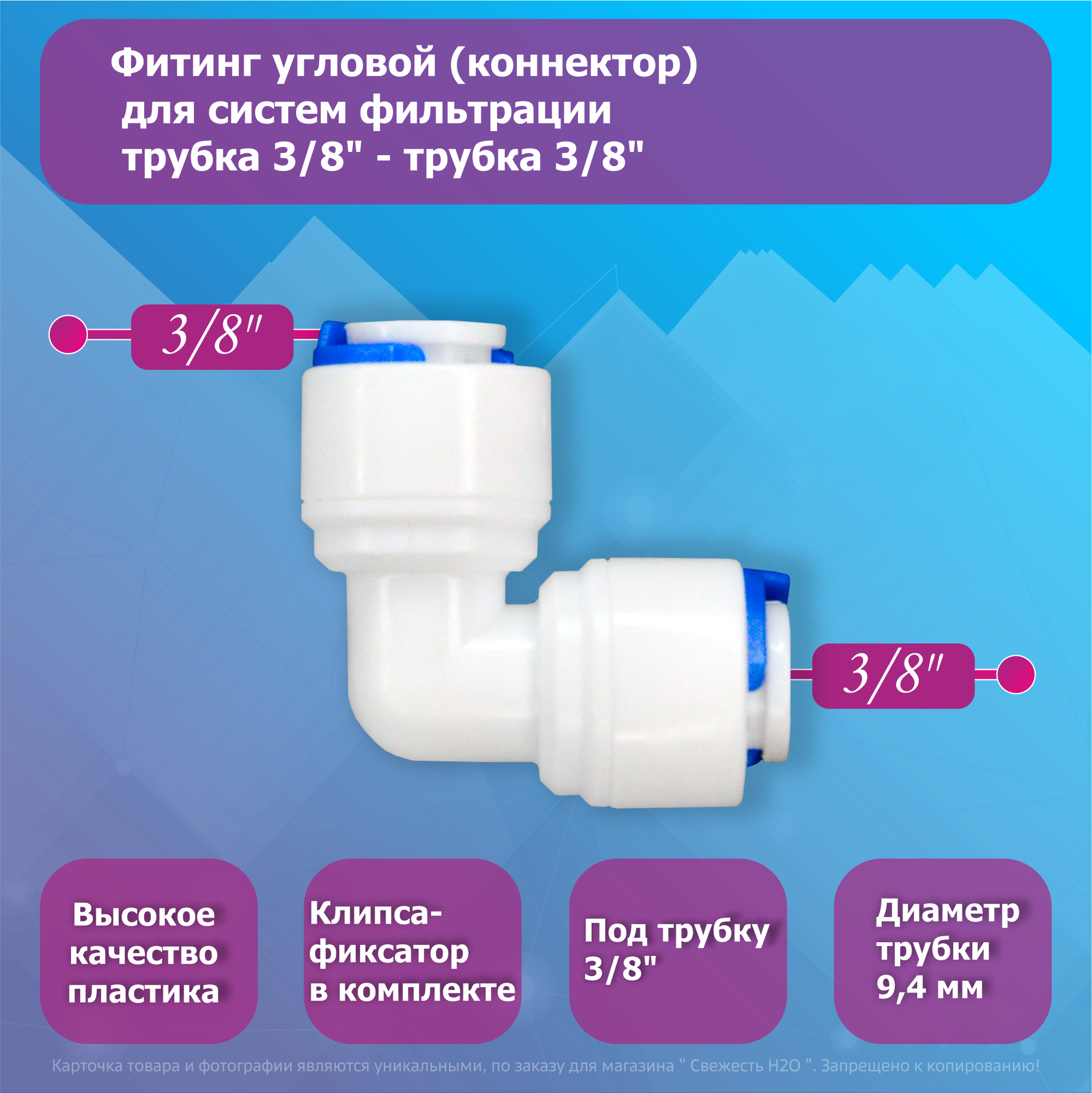 Купить Переходник фитинг угловой коннектор трубка 3/8"-трубка 3/8" для фильтра воды