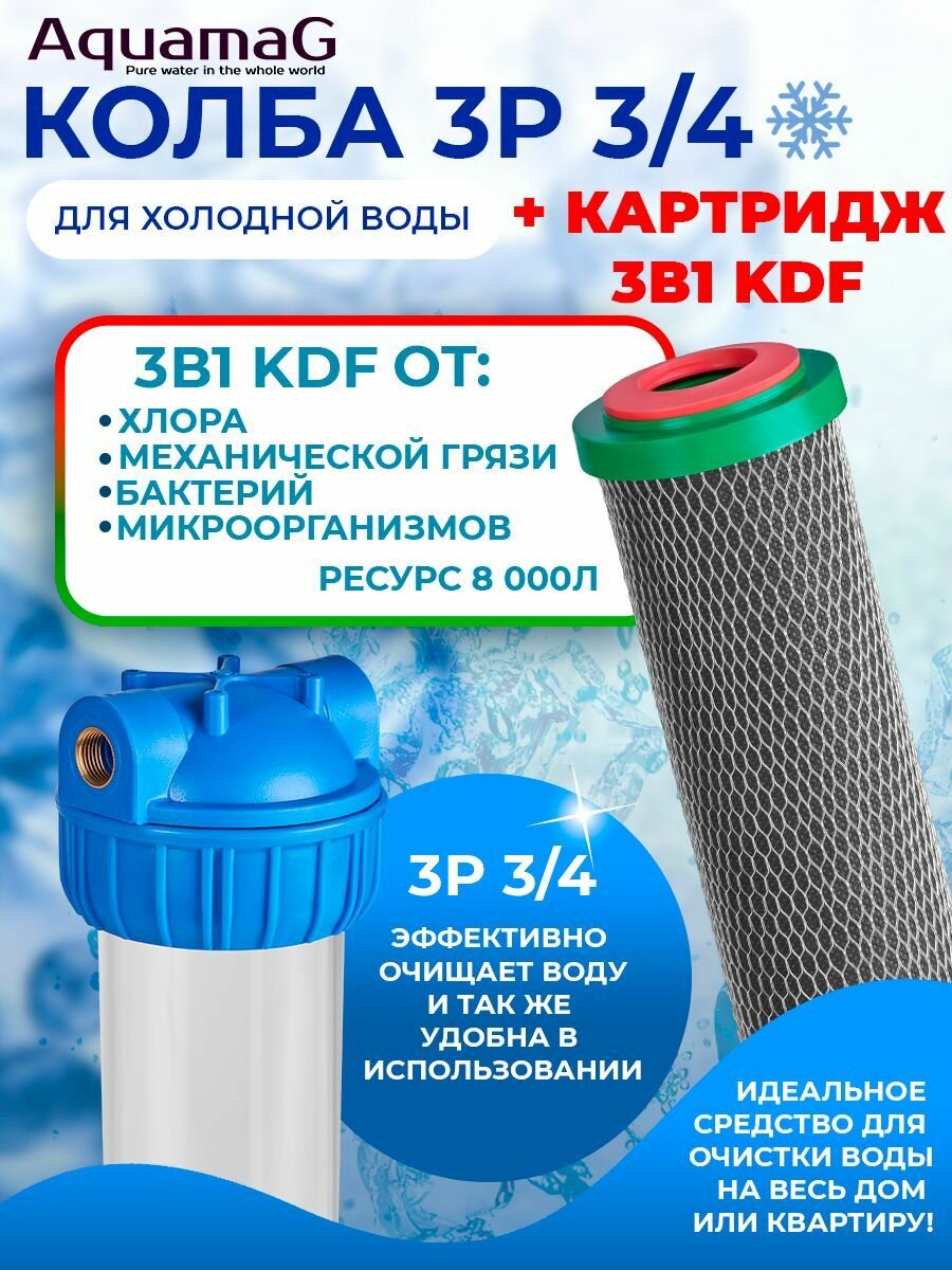 Колба для холодной воды 3P 3/4" + картридж 3в1 KDF 10 SL интересное: