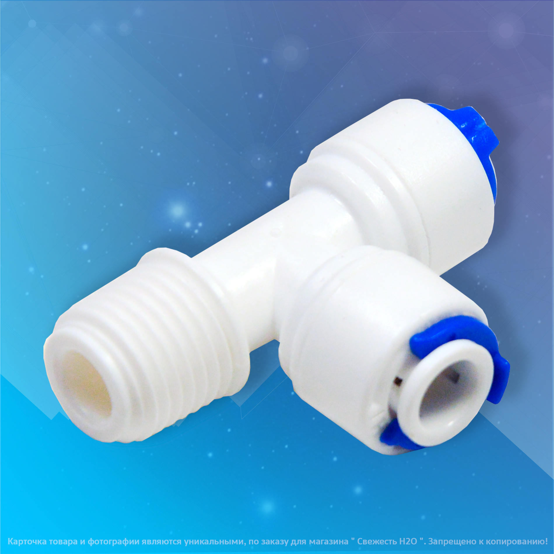 Купить Переходник фитинг тройник (Т-образный) для фильтров обратного осмоса трубка 1/4"-трубка-1/4"-наружная резьба 1/4"
