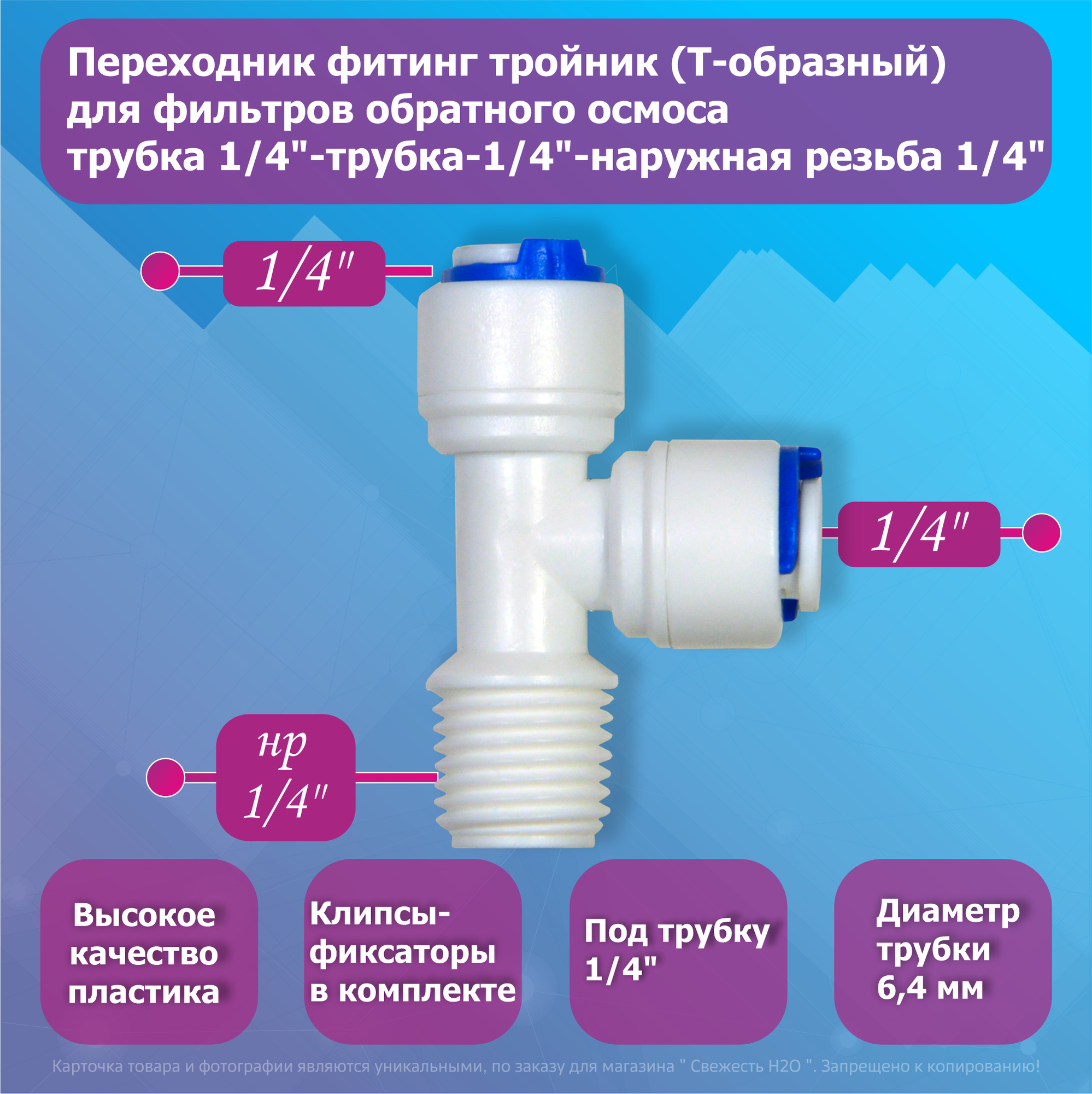 Переходник фитинг тройник (Т-образный) для фильтров обратного осмоса трубка 1/4"-трубка-1/4"-наружная резьба 1/4" интересное: