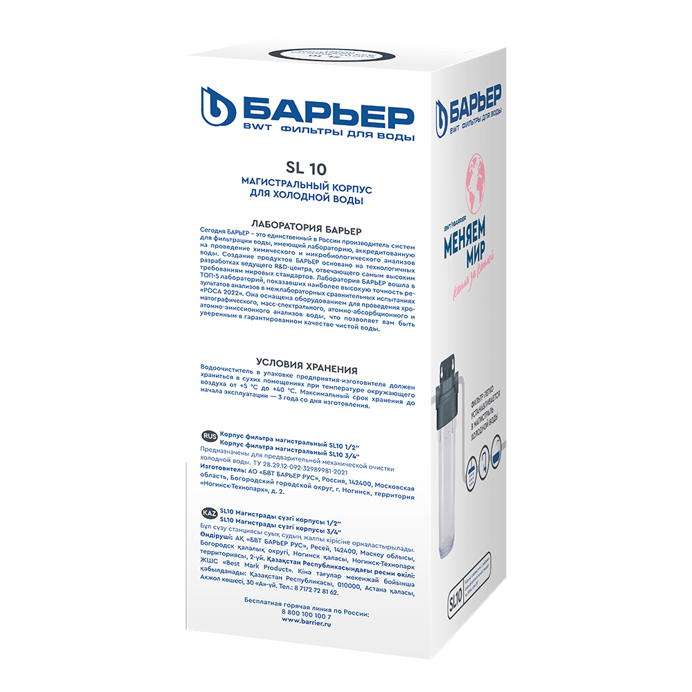 Корпус магистрального фильтра Барьер SL-10" 1/2" вр, прозрачный, для х/в интересное: