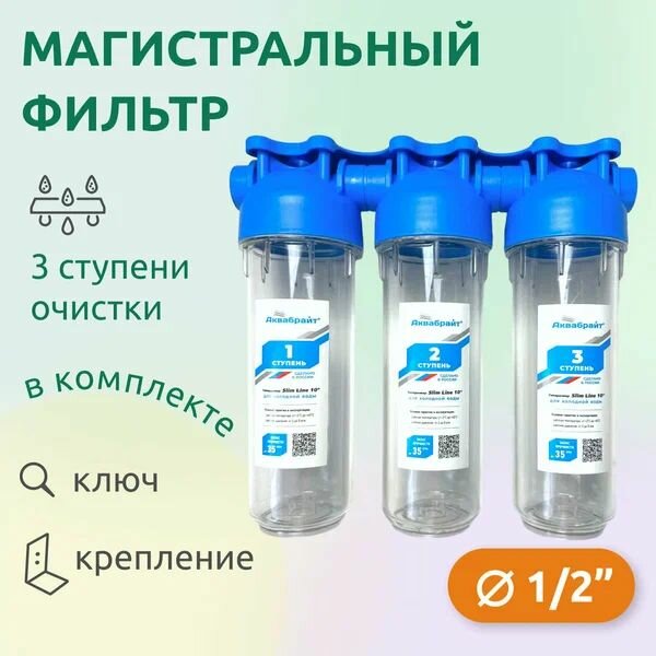 Трехступенчатый магистральный фильтр Аквабрайт АБФ-3 1/2 интересное: