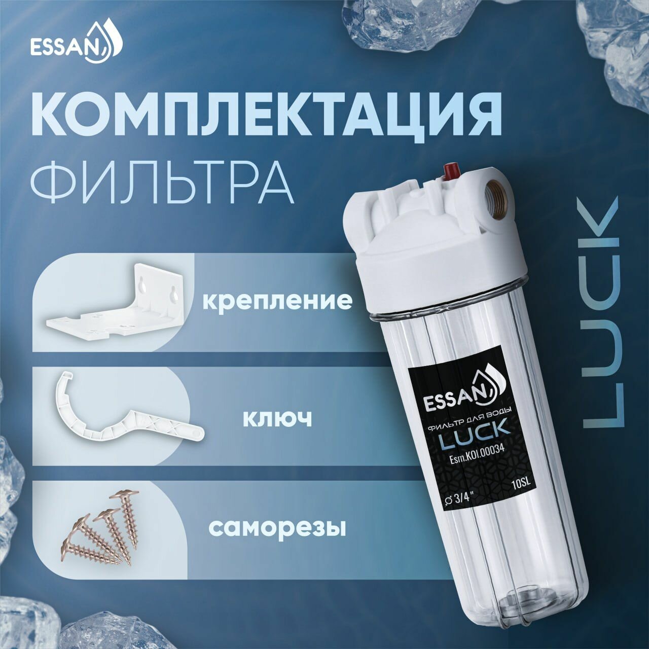 Фильтр колба проточная для магистрального водоснабжения из пластика ESSAN LUCK прозрачный, холодная вода 10SL Slim Line , 3/4" интересное: