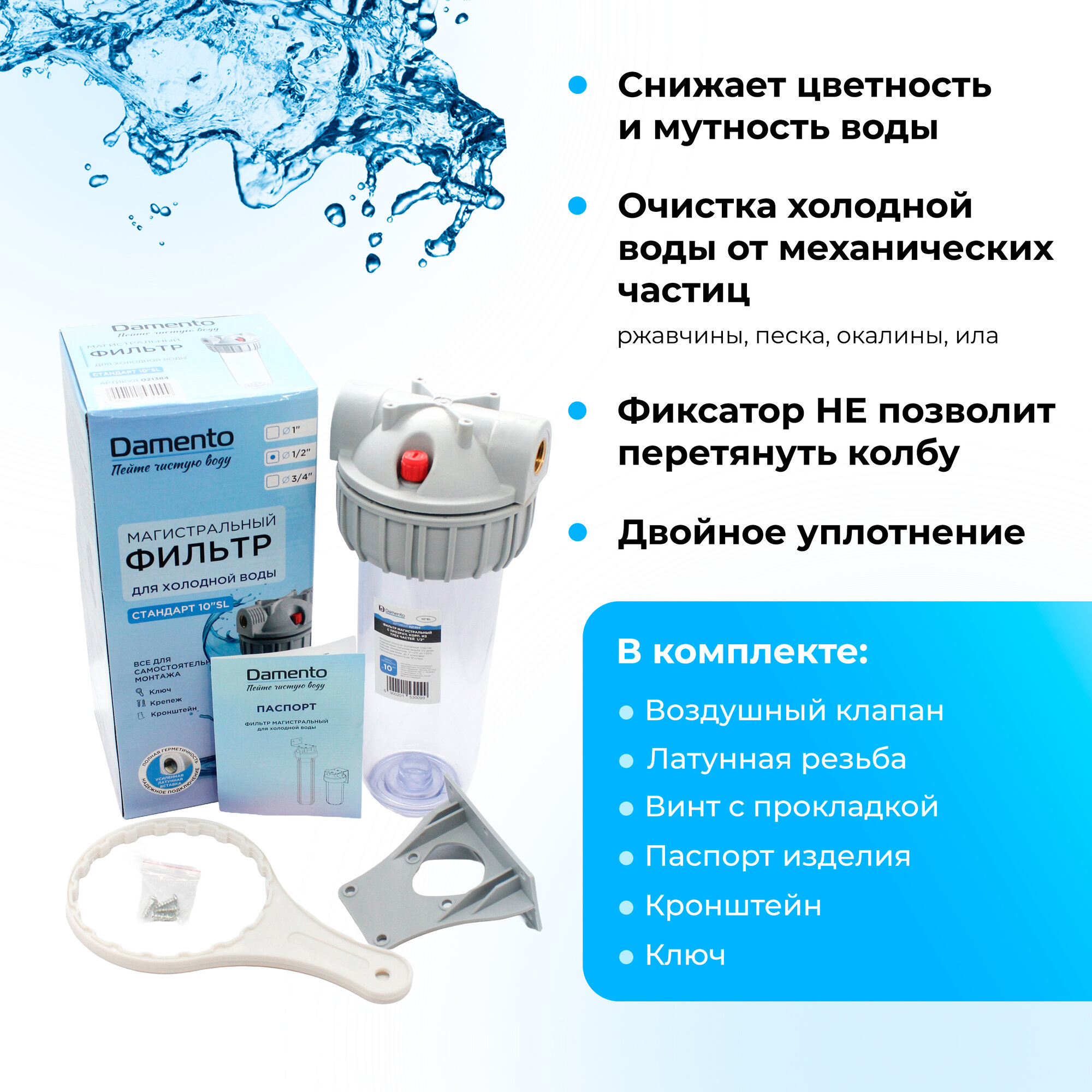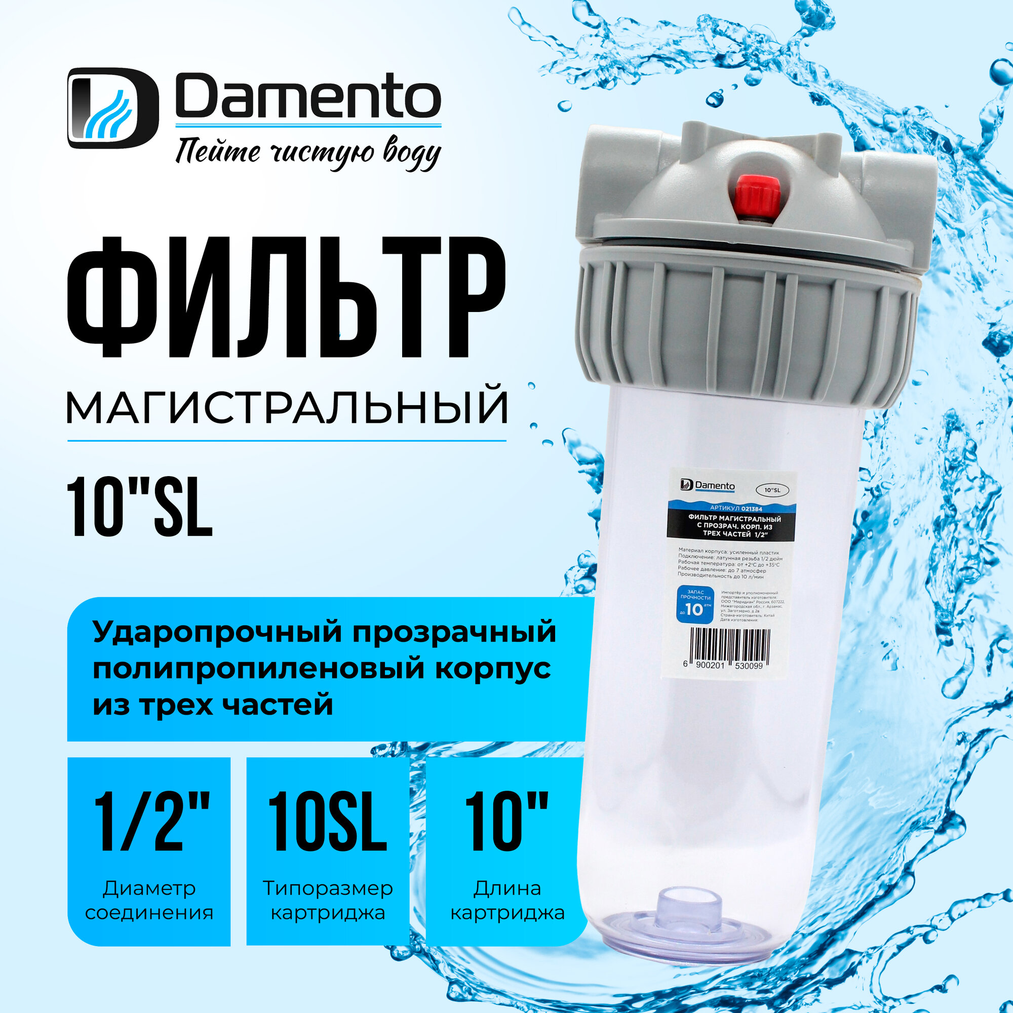 Фильтр магистральный Damento 10"SL с прозрачным корпусом из трех частей 1/2" интересное: