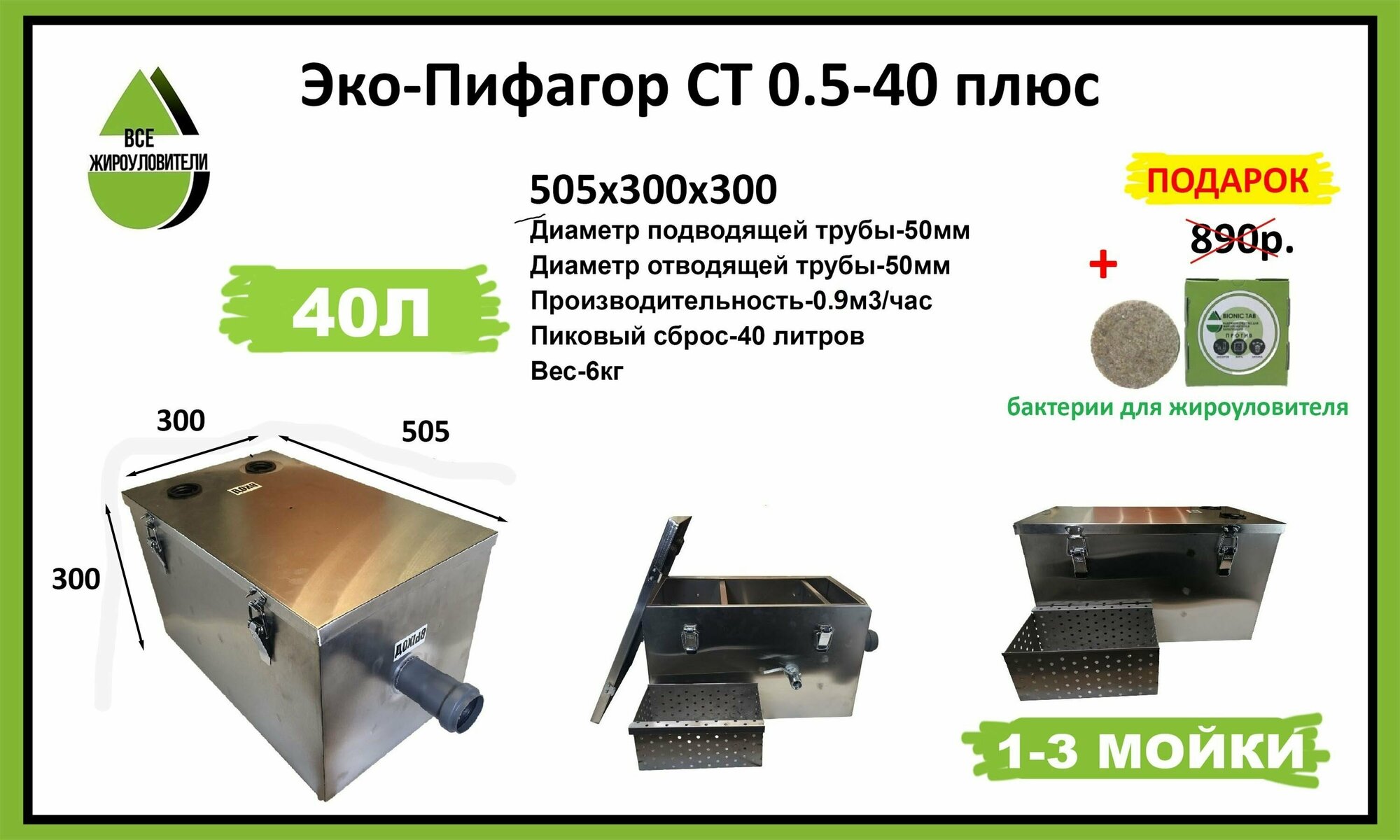 Жироуловитель под мойку 40 литров, стальной, металлический (нерж) Эко-Пифагор СТ 0,5-40 плюс интересное: