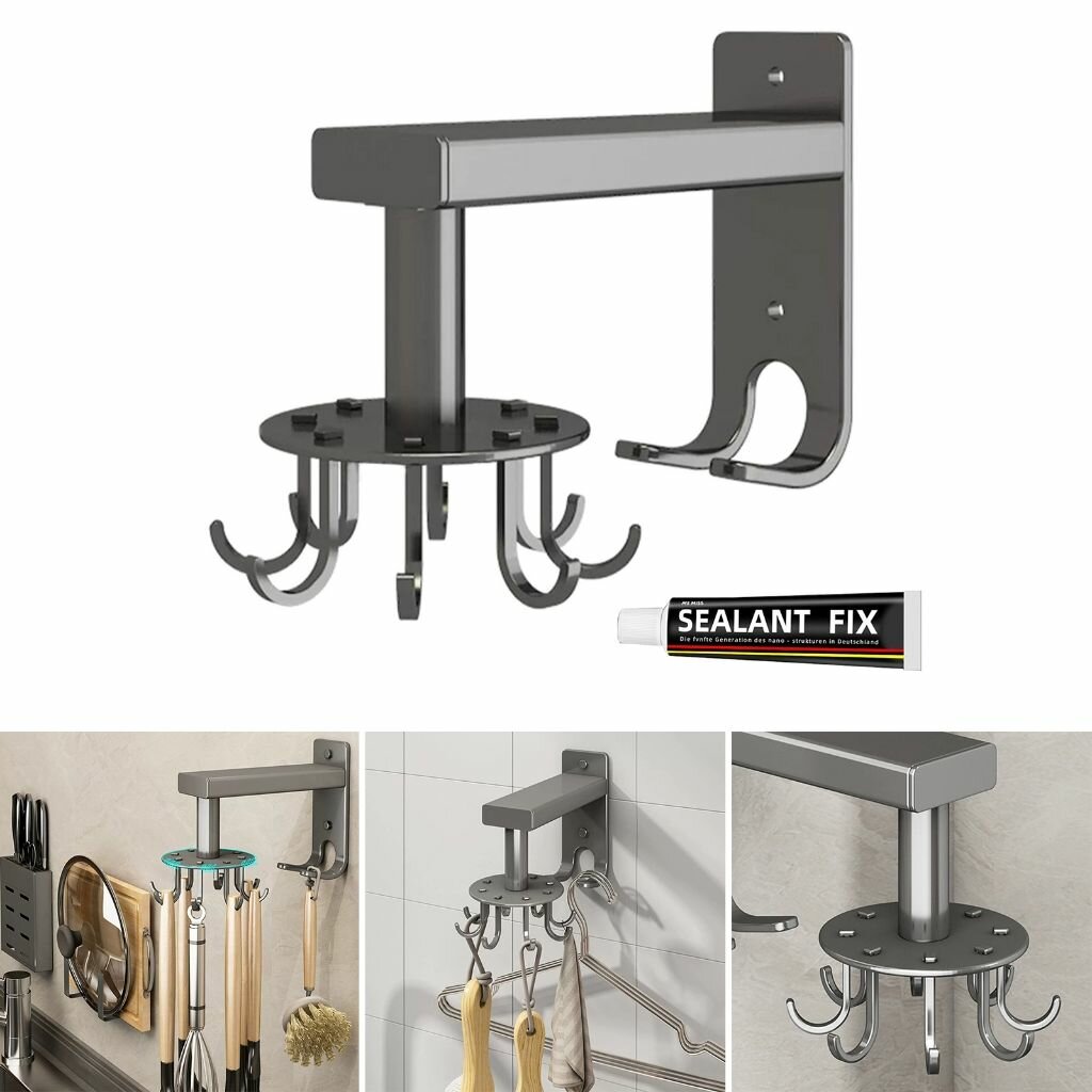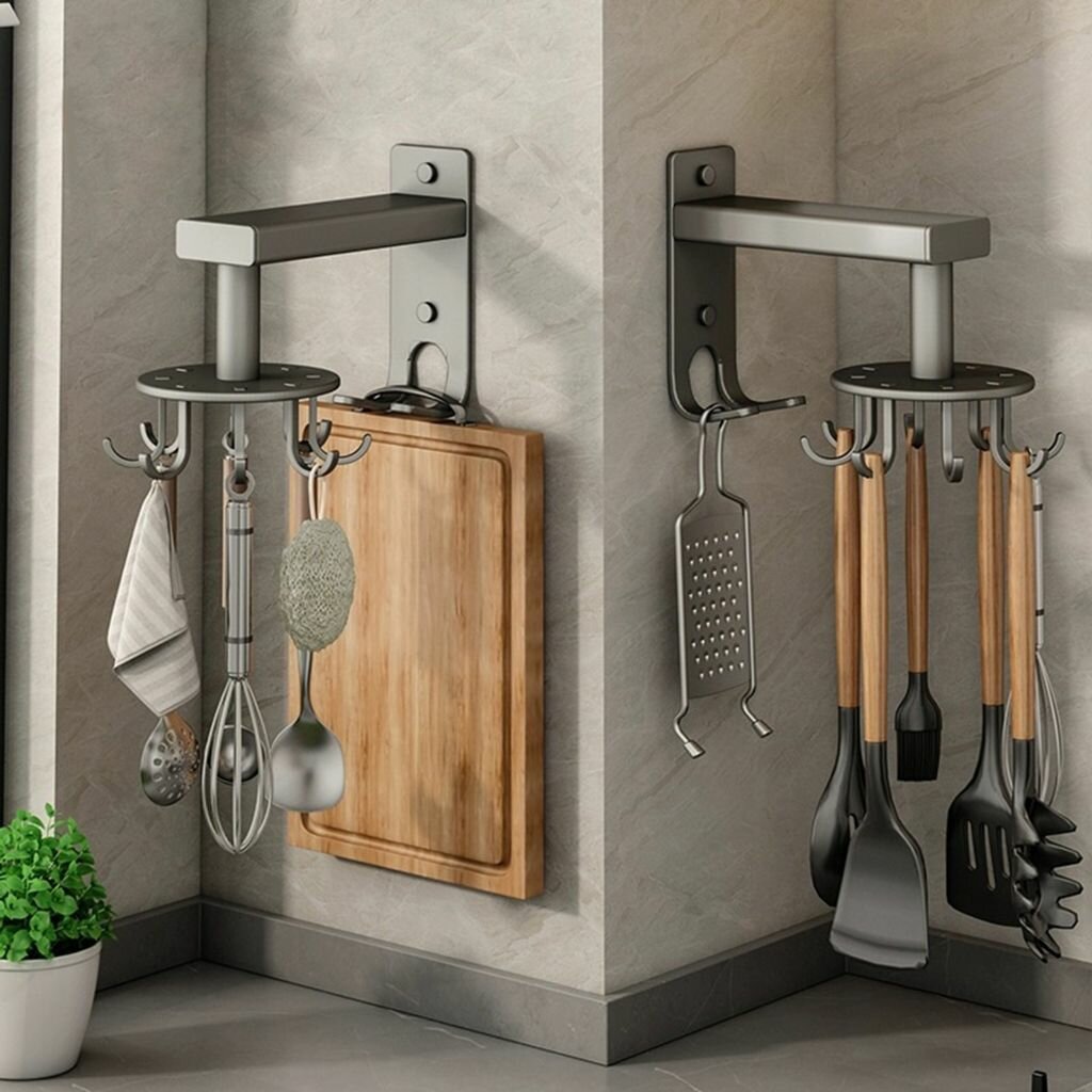 Кухонная настенная серая вращающаяся стойка для лопатки, подвесная ложка хранения посуды, крючок без перфорации интересное: