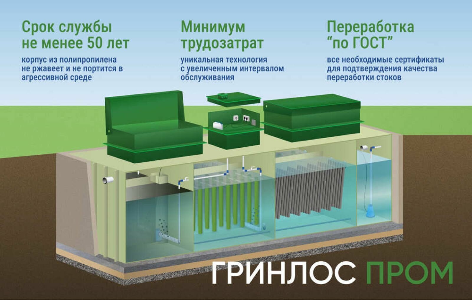 Промышленный септик гринлос БМ Пром 200 Пр (56 м3/сут, с насосом, на 200 человек) интересное: