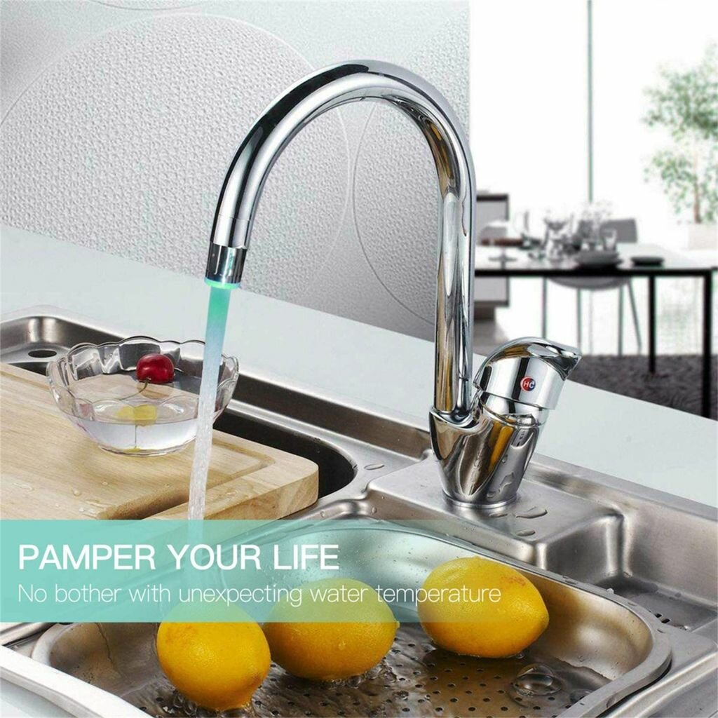 Купить Расширенный смеситель с защитой от брызг, светодиодный адаптер для датчиков температуры кухни, 3-цветный контролем