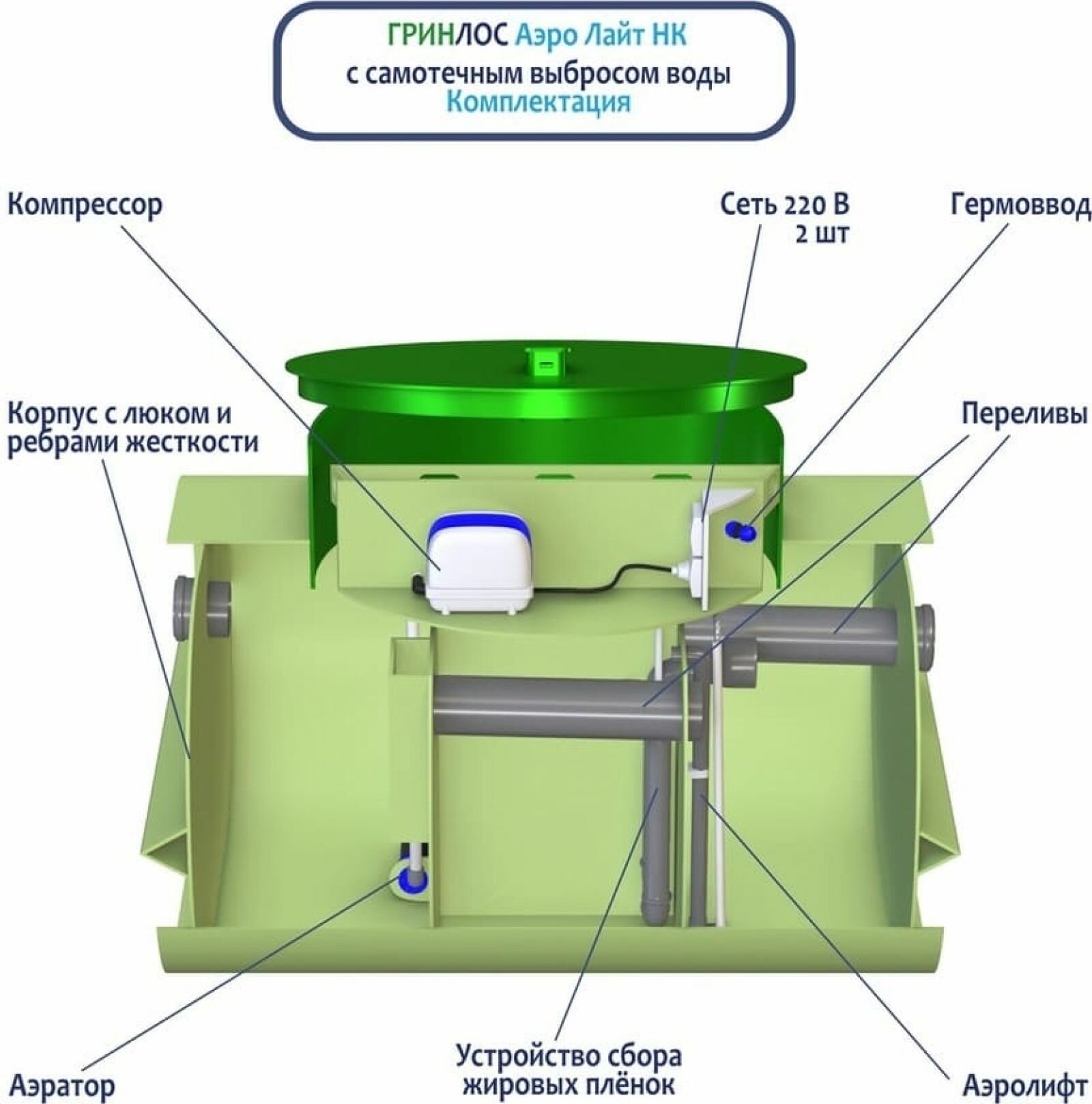 Септик для дома Гринлос Аэро Лайт 5 НК Лонг (1.4 м3/сут, самотечный, на 5 человек) интересное: