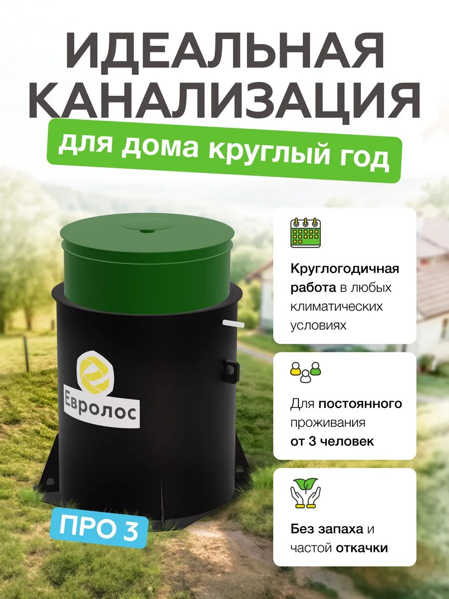 Ниже Вы можете прочитать отзывы на Септик для частного дома Евролос Про 3 "Самотечная", ознакомится с подробными характеристиками, посмотреть интересные обзоры и фотографии на Септик для частного дома Евролос Про 3 "Самотечная".