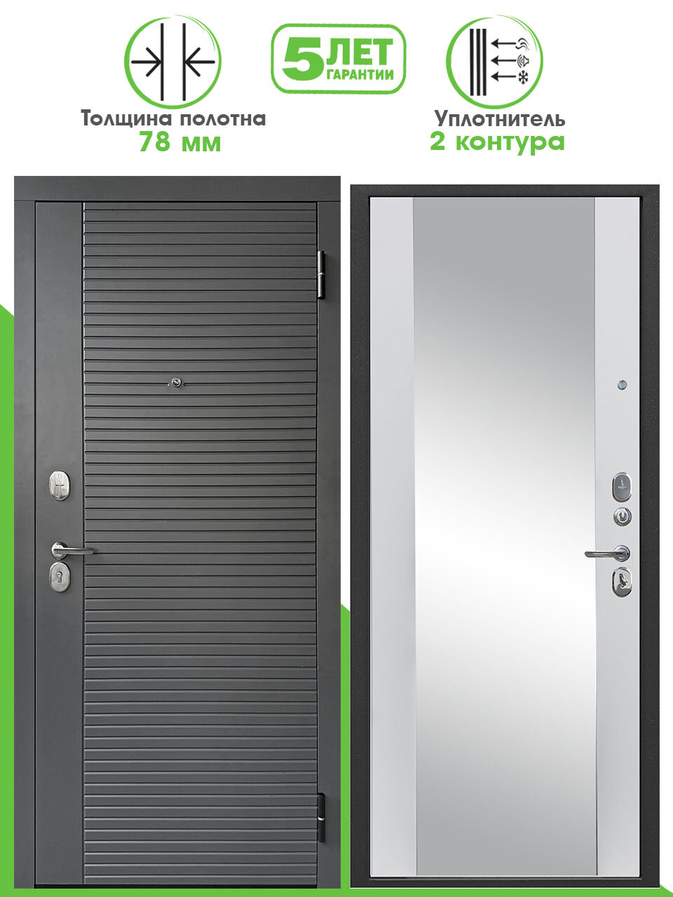 Дверь входная металлическая Foreman Ф-3 зеркало 2050x960 Правая Графит - Белый, УТ-00084130