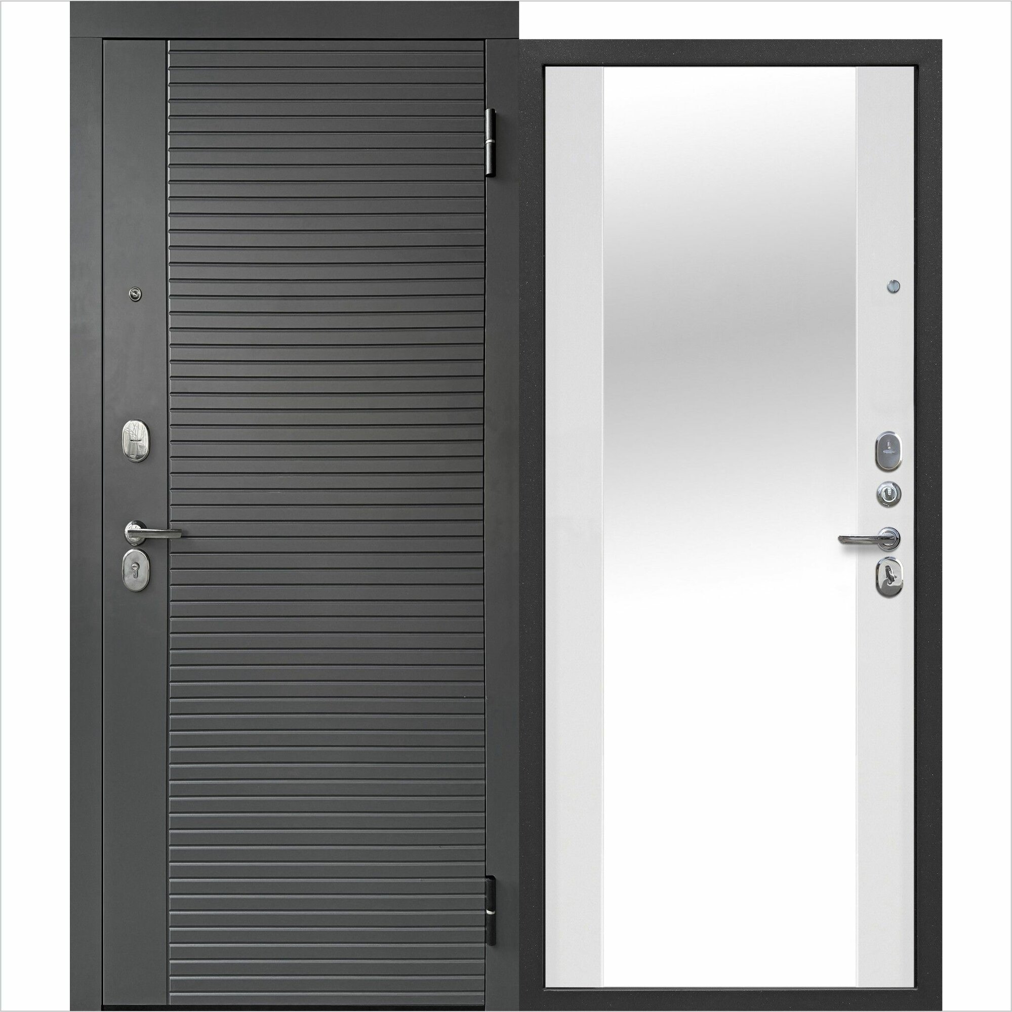 Дверь входная металлическая Тайга Т-2 Зеркало 2050х860 Правая Графит - Белый матовый интересное: