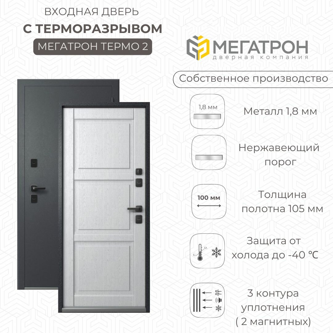 Дверь стальная мегатрон Термо-2 Графит муар RAL 7024 - Белый снег 960 левая (терморазрыв) интересное: