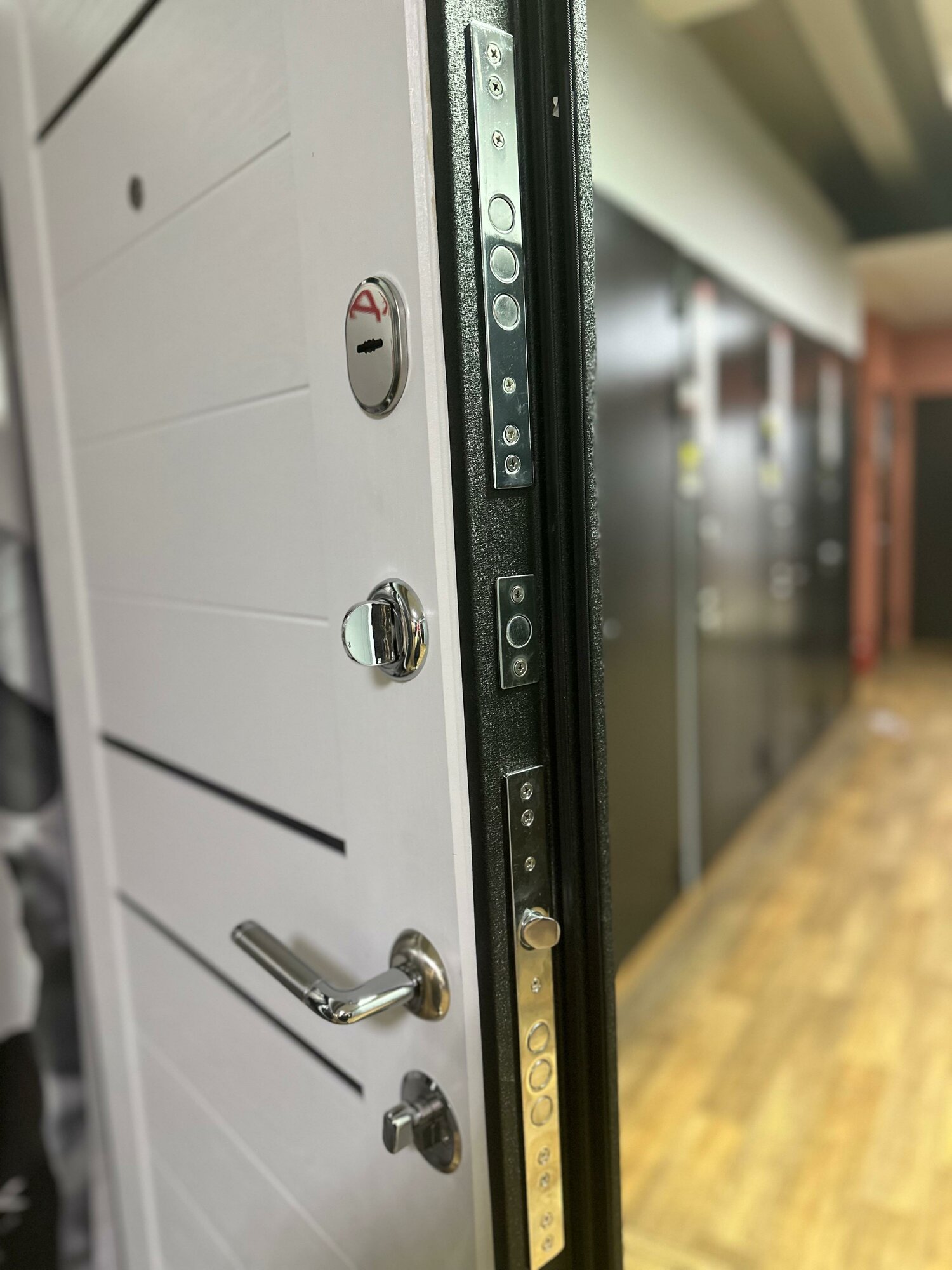 Купить Входная дверь металлическая в квартиру Кватро BLACK цвет: черный шелк/ясень белый размер: 860х2050 мм правая