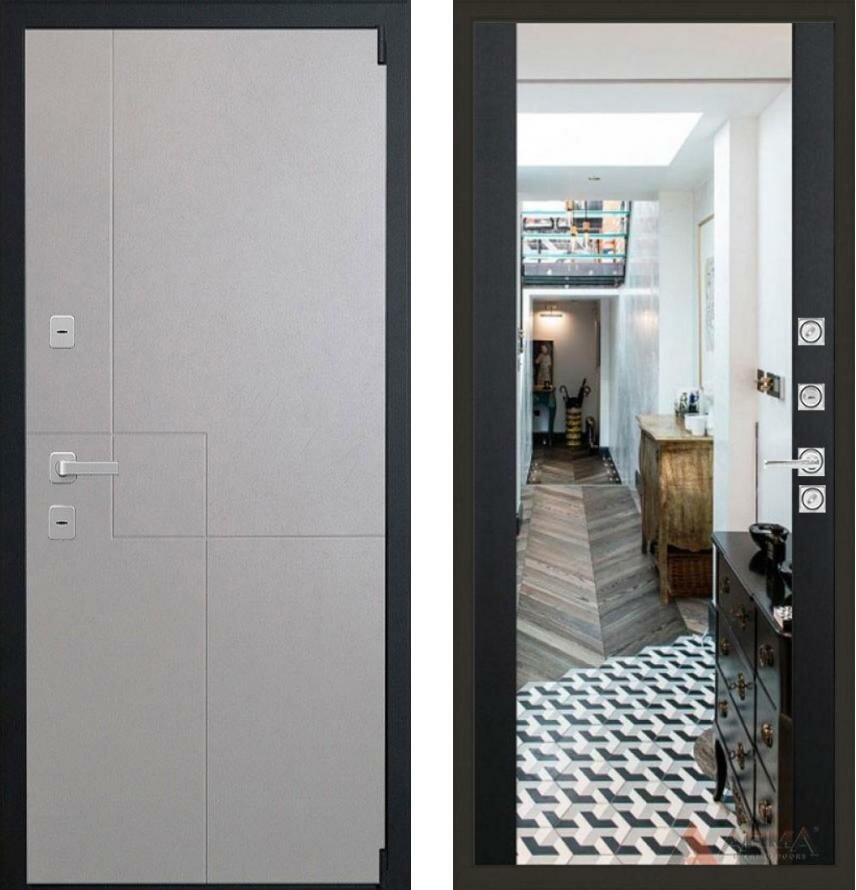 Входная дверь Арма Техно Лайт 12 с зеркалом "Черный кварц" 860x2050, открывание правое интересное: