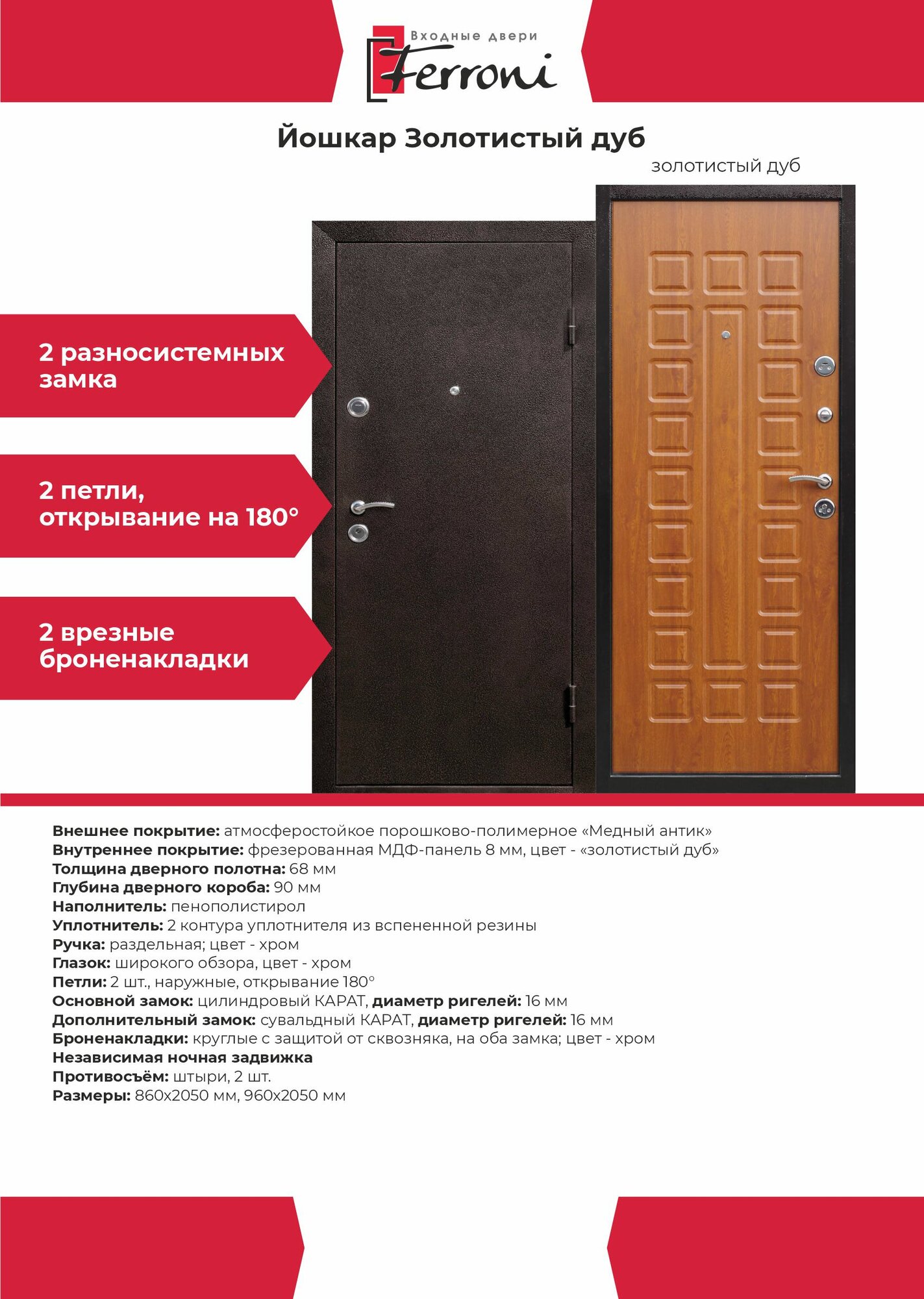 Входная дверь Ferroni Йошкар Золотистый дуб (960мм) правая интересное: