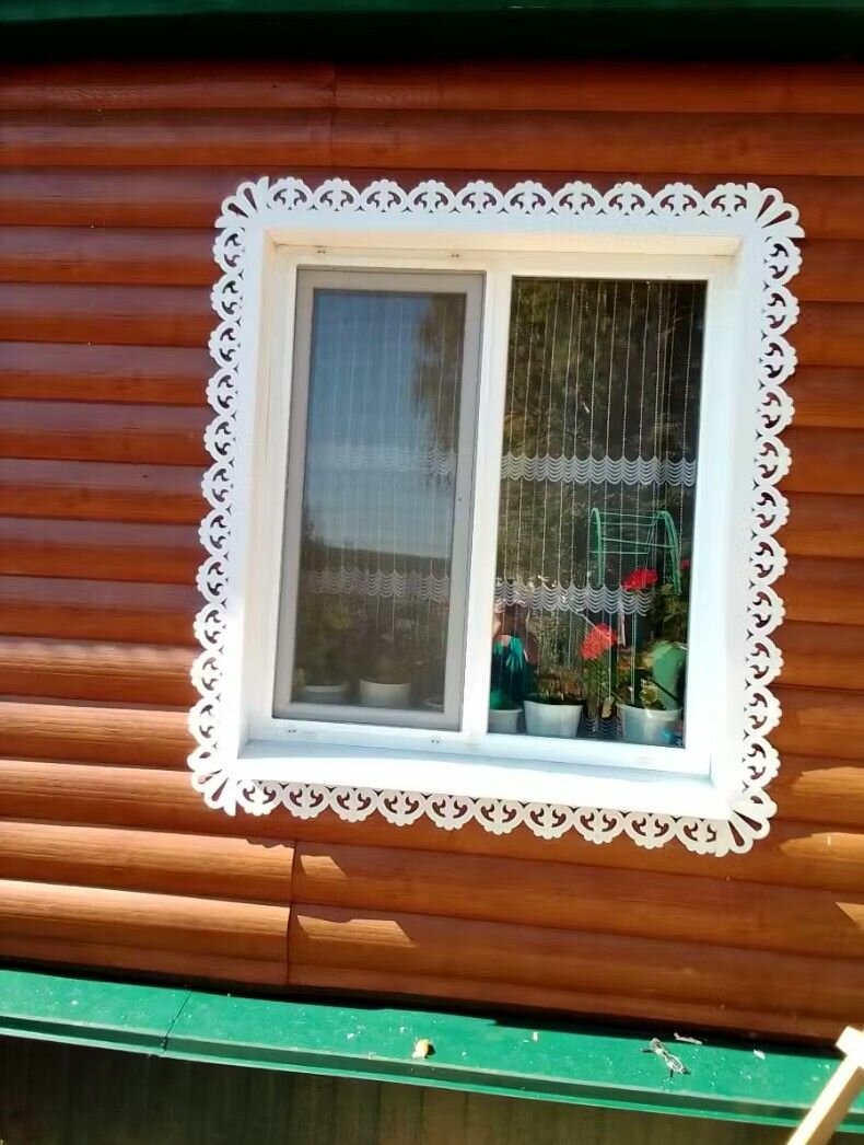 Наличники резные из пластика для окна. Комплект 4 шт + Углы соединители-4 шт. Модель Кружева интересное: