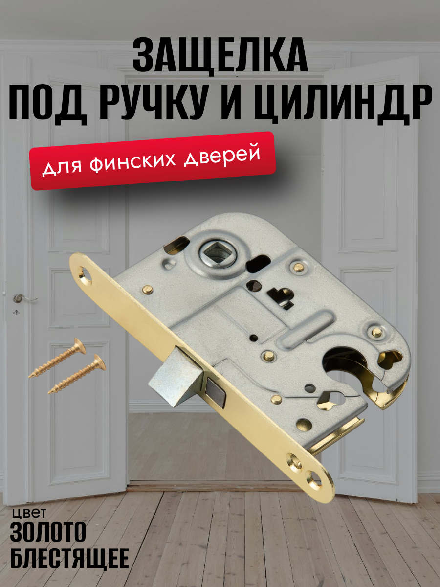 Защелка для межкомнатных дверей под ручку и завертку, золото блестящее