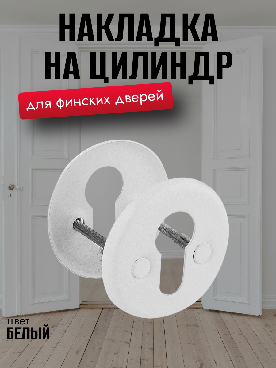 Накладка на двери межкомнатные под флажковый ключ, накладная установка, стальная, с белым цветом