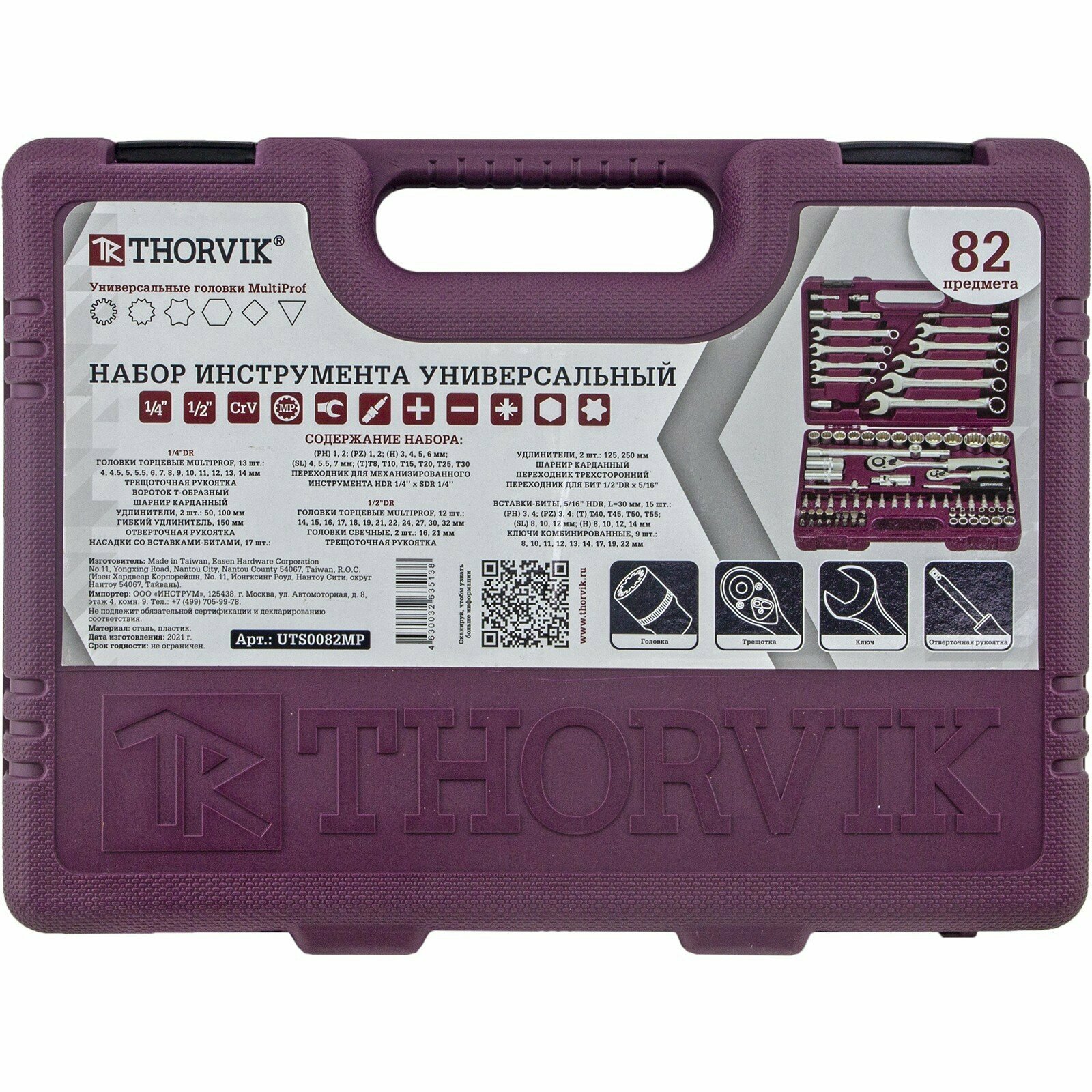 Набор инструментов Thorvik 82 предмета, для автомобиля и дома 1/4", 1/2"DR с универсальными головками MultiProf, UTS0082MP